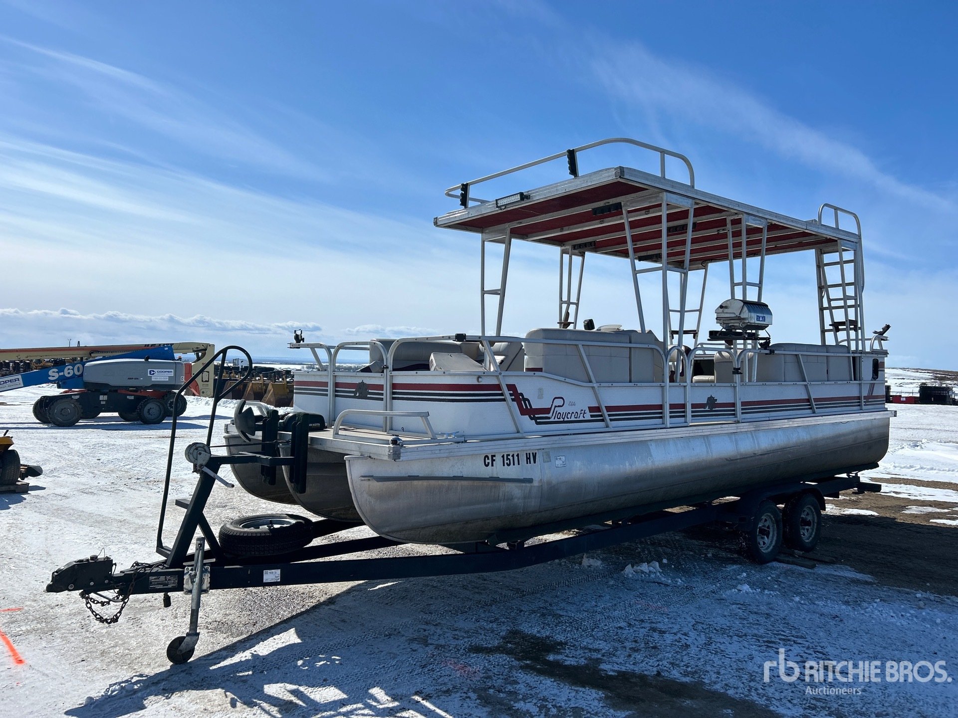 1. 1994 Playcraft 24 Elite 24 ft Pontoon Boat w/ Vanson Trailers Inc Trailer (primary item)
