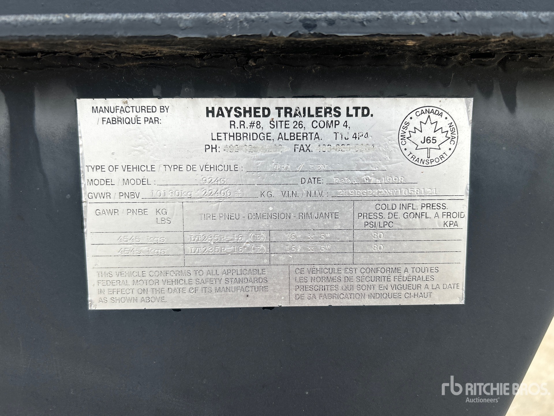 The detailed equipment information is limited in scope, and Ritchie Bros. Auctioneers has not inspected any aspects or components of the equipment other than those expressly set forth herein. Unless expressly stated, we make no representations or warranties, express or implied, concerning the equipment or its components, including without limitation any representations or warranties concerning functionality, conformity or compliance with any safety standard or requirement of any applicable authority or regulatory body, fitness for any particular purpose, or merchantability. You are strongly advised to perform your own detailed inspection of the equipment prior to bidding.