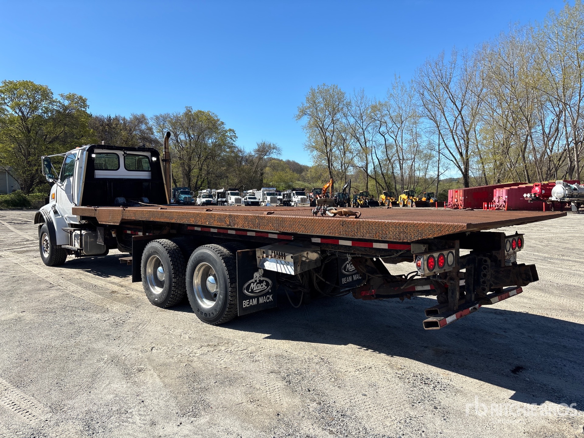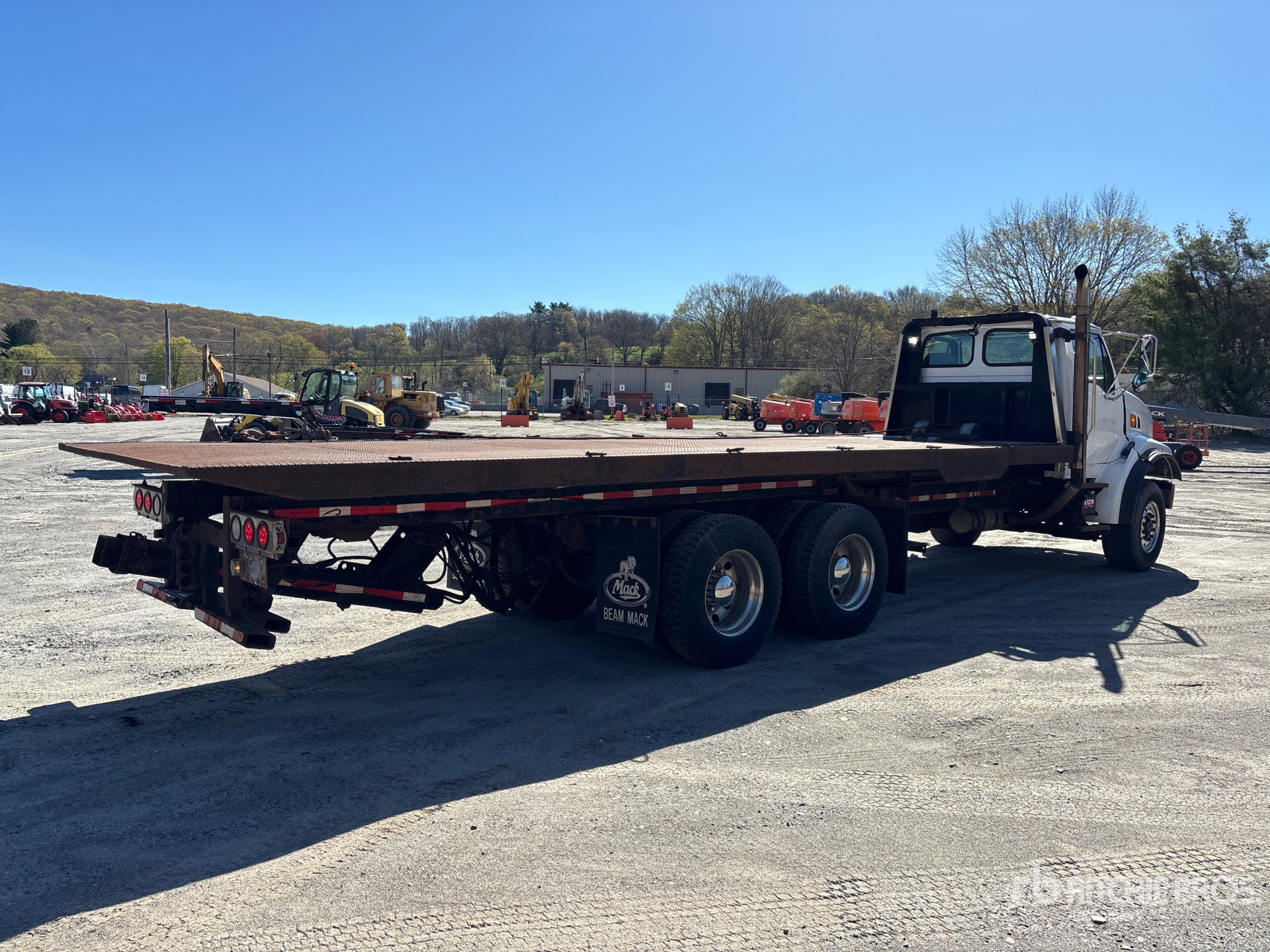 Cat 3126 6 Cylinder 7.2 L Diesel 330 hp Engine, 8203 Engine hrs, Exhaust Brake, Eaton Fuller 8LL Manual Transmission, Differential Lock, 18000 lb Front Axle, 40000 lb Rears, 58000 lb GVWR, Aluminum Outer Wheels, 385/65R22.5 Front Tires, 11R22.5 Rear Tires, Dual Steering Boxes, Double Frame, Hendrickson Spring over Walking Beam Suspension, 245 in Wheelbase, PTO, Jerr-Dann 815TR Rollback Body, 28 ft x 96 in Bed, Ramsey Winch, Hydraulic Wheel Lift