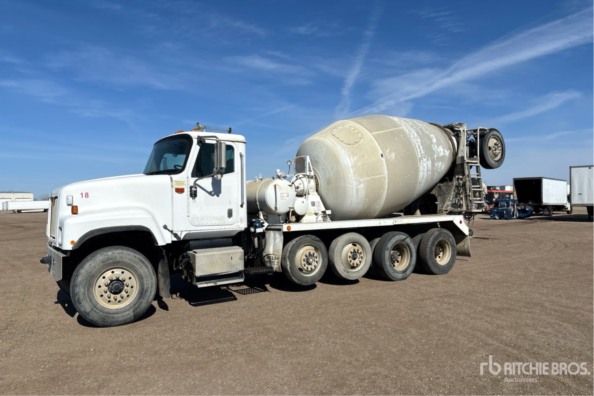 cat 6 Cylinder 11.9 L Diesel 505 hp Engine, 2001 US EPA Label, Eaton Fuller 9-Speed Manual Transmission, 20000 lb Front Axle, 46000 lb Rears, 425/65R22.5 Front Tires, 11R22.5 Rear Tires, 2 Steerable Air Lift Pusher Axle, Trailing Tag Axle, Rubber over Walking Beam Suspension, 250 in Wheelbase, PTO, McNeilus 11 cyd Mixer Unit, 3 Removable Chutes