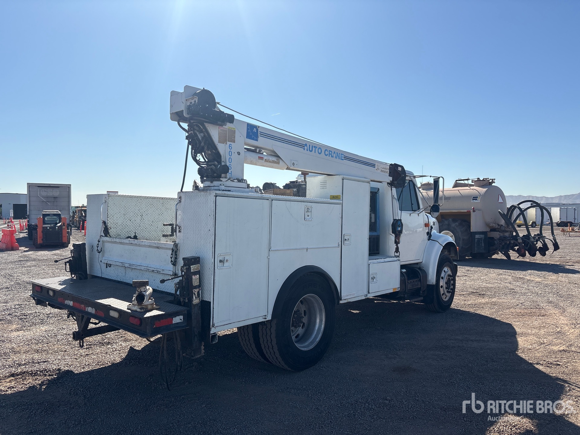 International 6 Cylinder 7.6 L Diesel Engine, Manual Transmission, 8000 lb Front Axle, 17500 lb Rears, 25500 lb GVWR, Aluminum Wheels, 11R22.5 Front Tires, 11R22.5 Rear Tires, Spring Suspension, 155 in Wheelbase, PTO, SOUTHERN 11 ft Body, Hydraulic Stabilizers, Auto Crane 6006h 3 Section Crane, Wired Remote Control, Miller 250D Diesel Generator Set, Ingersoll-Rand Gasoline Air Compressor, Air Hose Reel