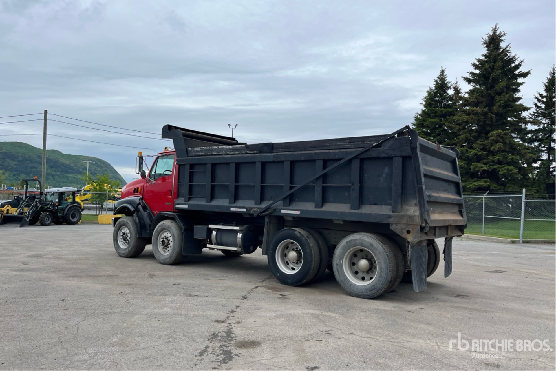 Located in Lane 6 Spot 14, Cat C15 6 Cylinder Diesel 475 hp Engine, 32960 Engine hrs, Eaton Fuller 18-Speed Manual Transmission, Differential Lock, 40000 lb Front Axle, 46000 lb Rears, 66000 lb GVWR, Air Ride Cab, Aluminum Outer Wheels, 425/65R22.5 Front Tires, 11R24.5 Rear Tires, Dual Steering Boxes, Double Frame, Airliner Air Ride Suspension, 210 in Wheelbase, PTO, 19 ft 6 in Long x 4 ft High Steel Body, Air Powered Roll Tarp