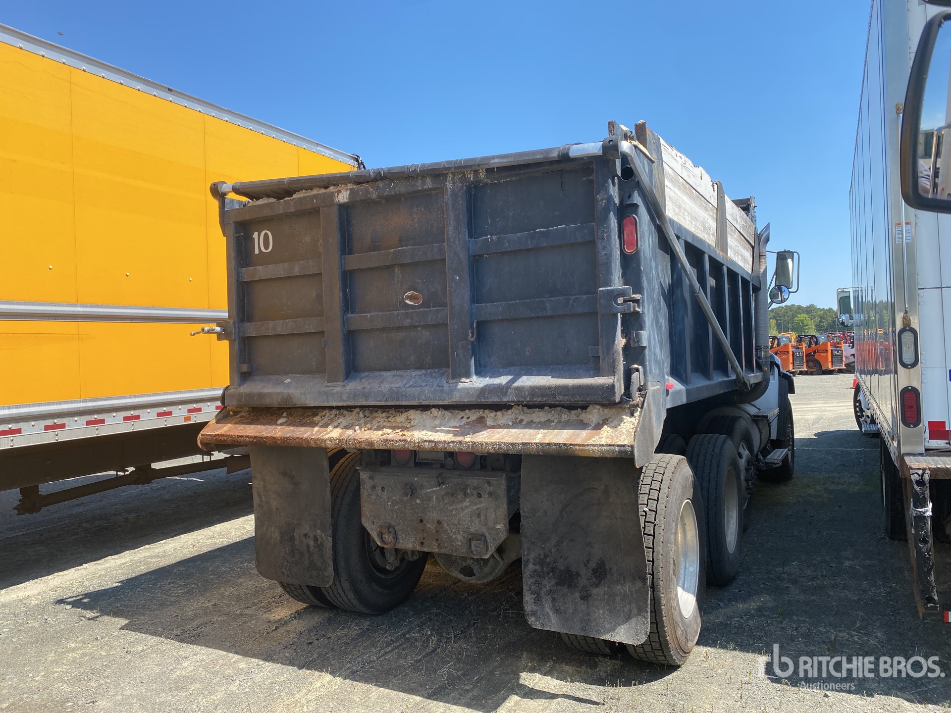 Cat C13 6 Cylinder Diesel Engine, 18915 Engine hrs, Engine Brake, Allison Automatic Transmission, 20000 lb Front Axle, 46000 lb Rears, 66000 lb GVWR, Air Ride Cab, Aluminum Wheels, 385/65R22.5 Front Tires, 11R22.5 Rear Tires, Air Lift Pusher Axle, Double Frame, Tuf Trac Rubber over Walking Beam Suspension, 192 in Wheelbase, 14 ft 10 in Long x 4 ft 10 in High Steel Body, Electric Roll Tarp