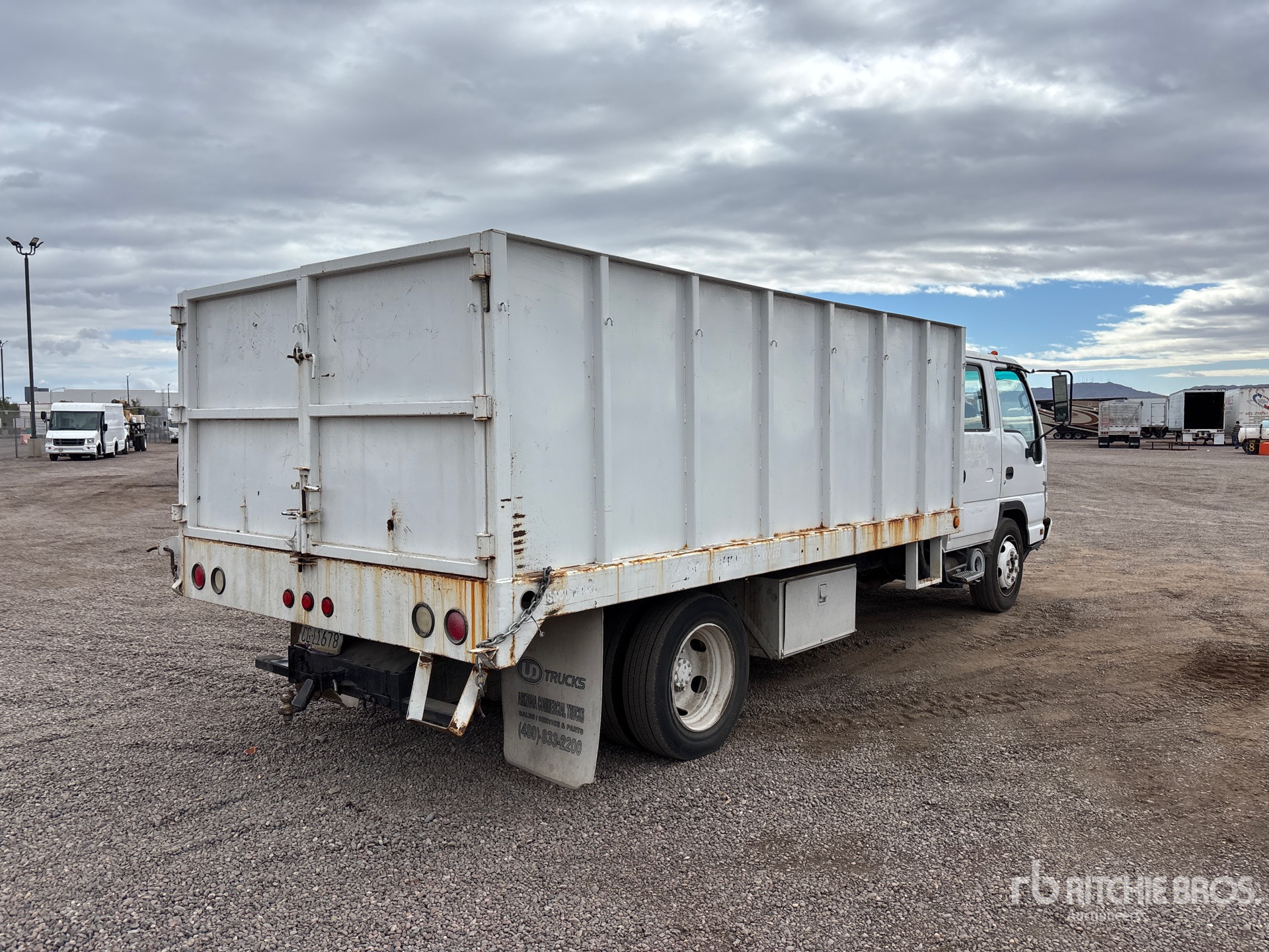 Located in Lane 18 Spot 51, Isuzu Diesel Engine, US EPA Label, Automatic Transmission, 225/70R19.5, Spring Suspension, 177 in Wheelbase, 13 ft 6 in Long x 4 ft High Steel Body, Swing Tailgate