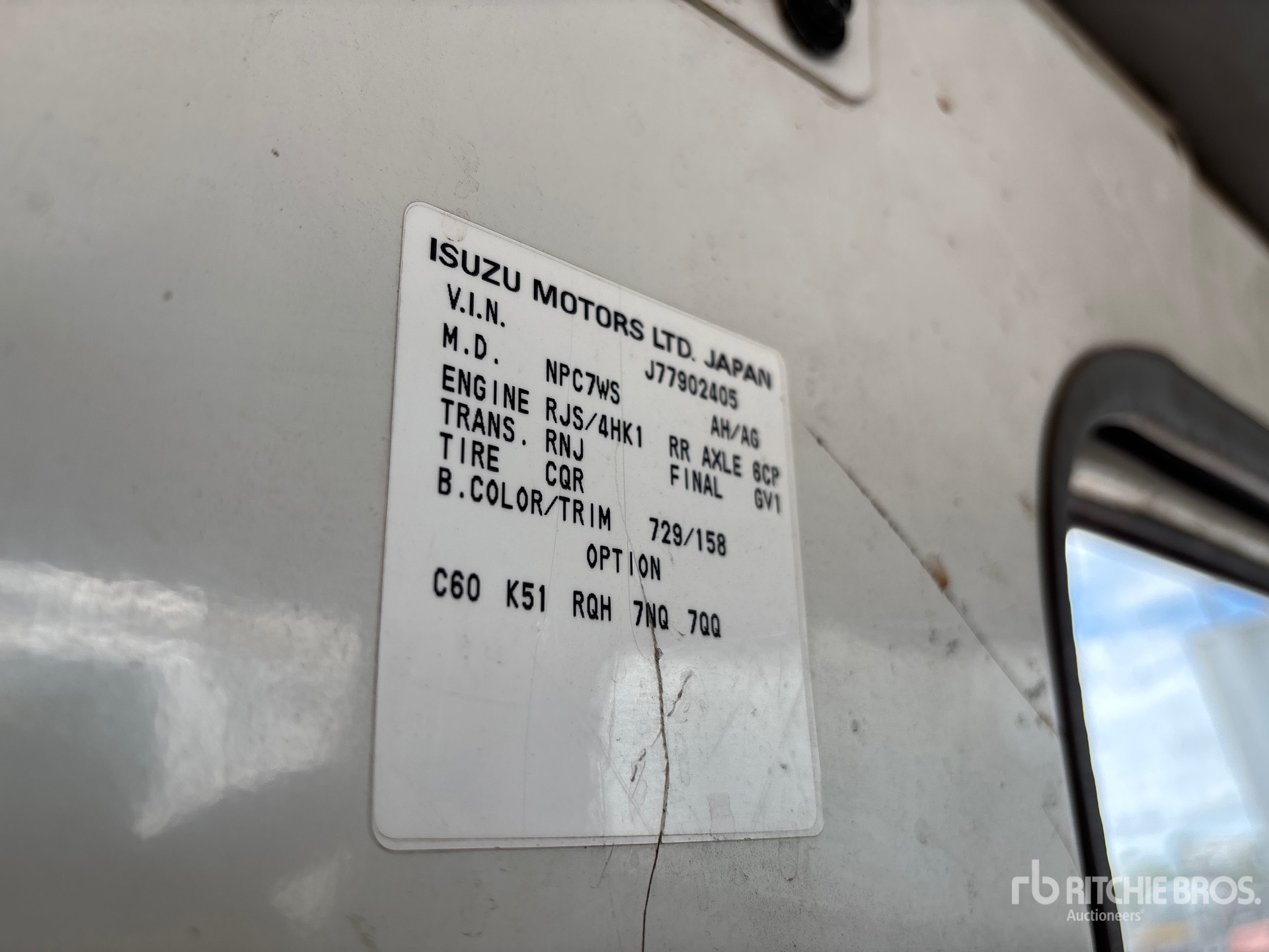 The detailed equipment information is limited in scope, and Ritchie Bros. Auctioneers has not inspected any aspects or components of the equipment other than those expressly set forth herein. Unless expressly stated, we make no representations or warranties, express or implied, concerning the equipment or its components, including without limitation any representations or warranties concerning functionality, conformity or compliance with any safety standard or requirement of any applicable authority or regulatory body, fitness for any particular purpose, or merchantability. You are strongly advised to perform your own detailed inspection of the equipment prior to bidding.