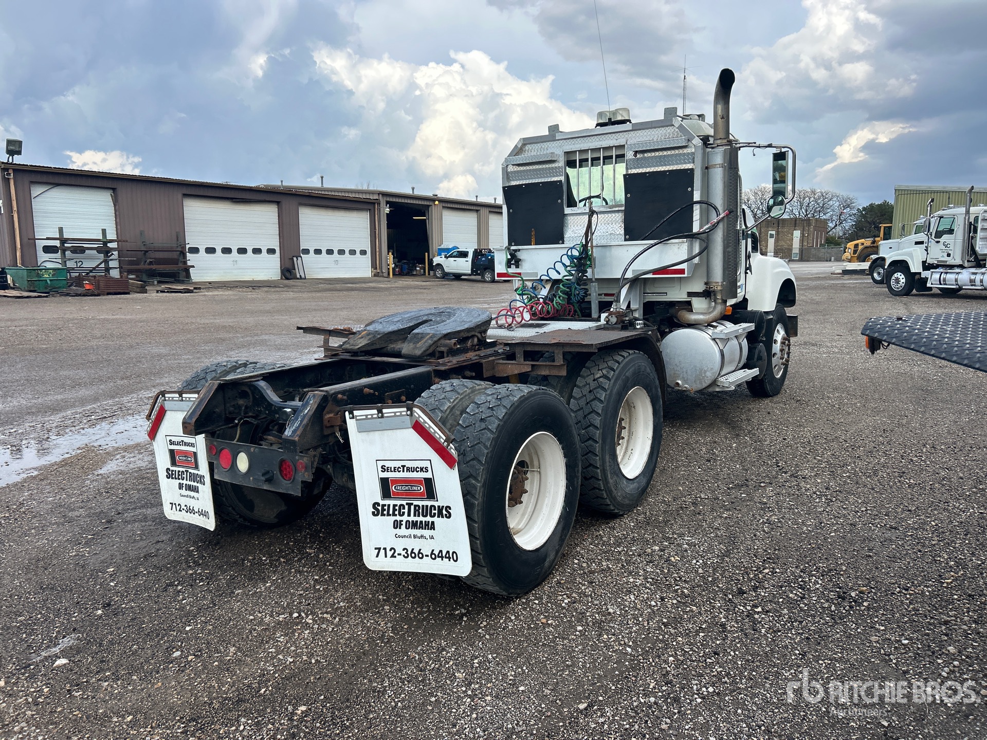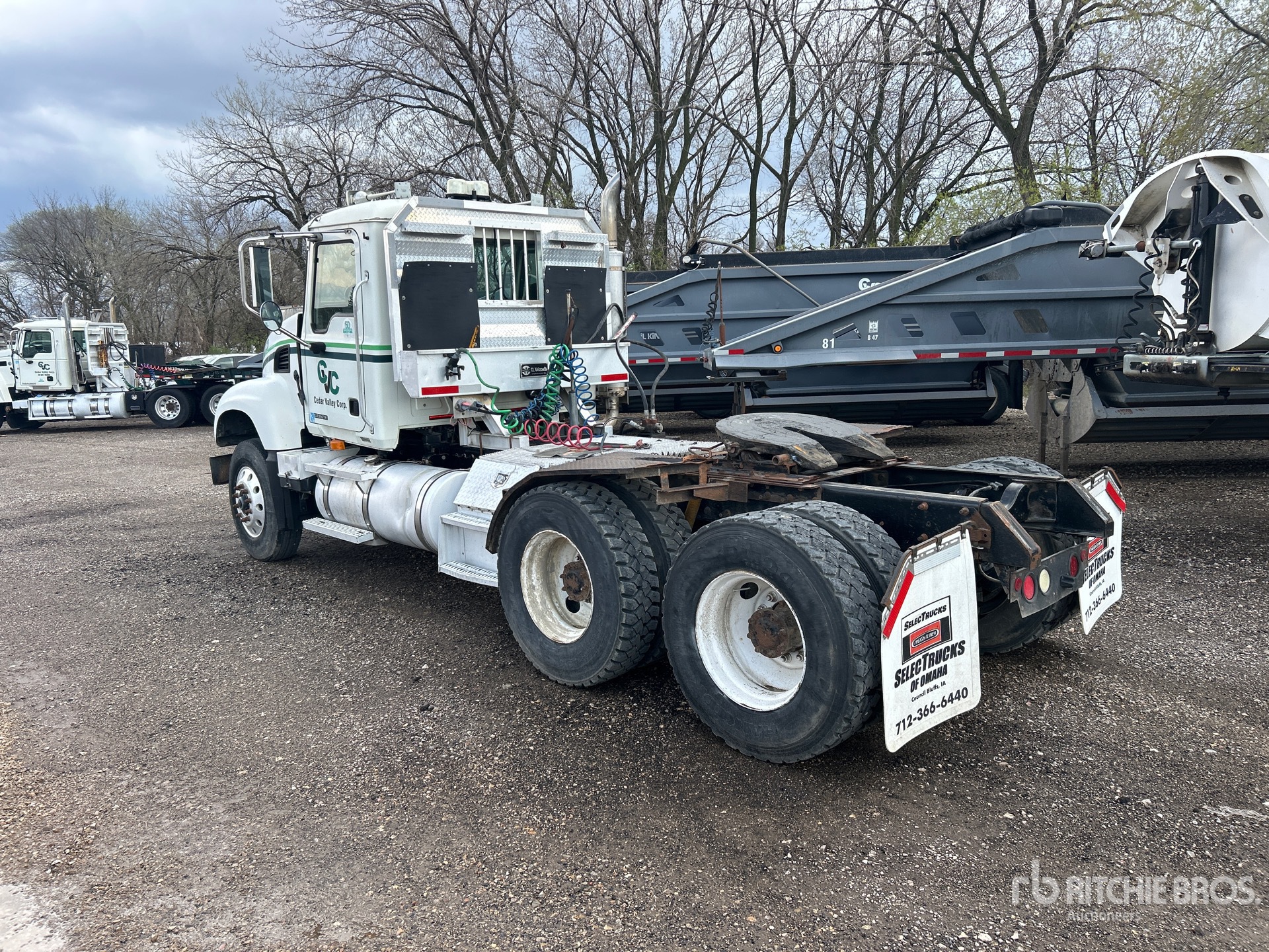 Mack AI-427 427 hp Engine, 10682 Engine hrs, Eaton Fuller 8LL Manual Transmission, 11680 lb Front Axle, 38000 lb Rears, 49680 lb GVWR, 186 in Wheelbase, Camelback, Aluminum Front Wheels, 11R22.5, Wet Kit, Air Sliding 5th Wheel, Dual Fuel Tanks, Headache Rack