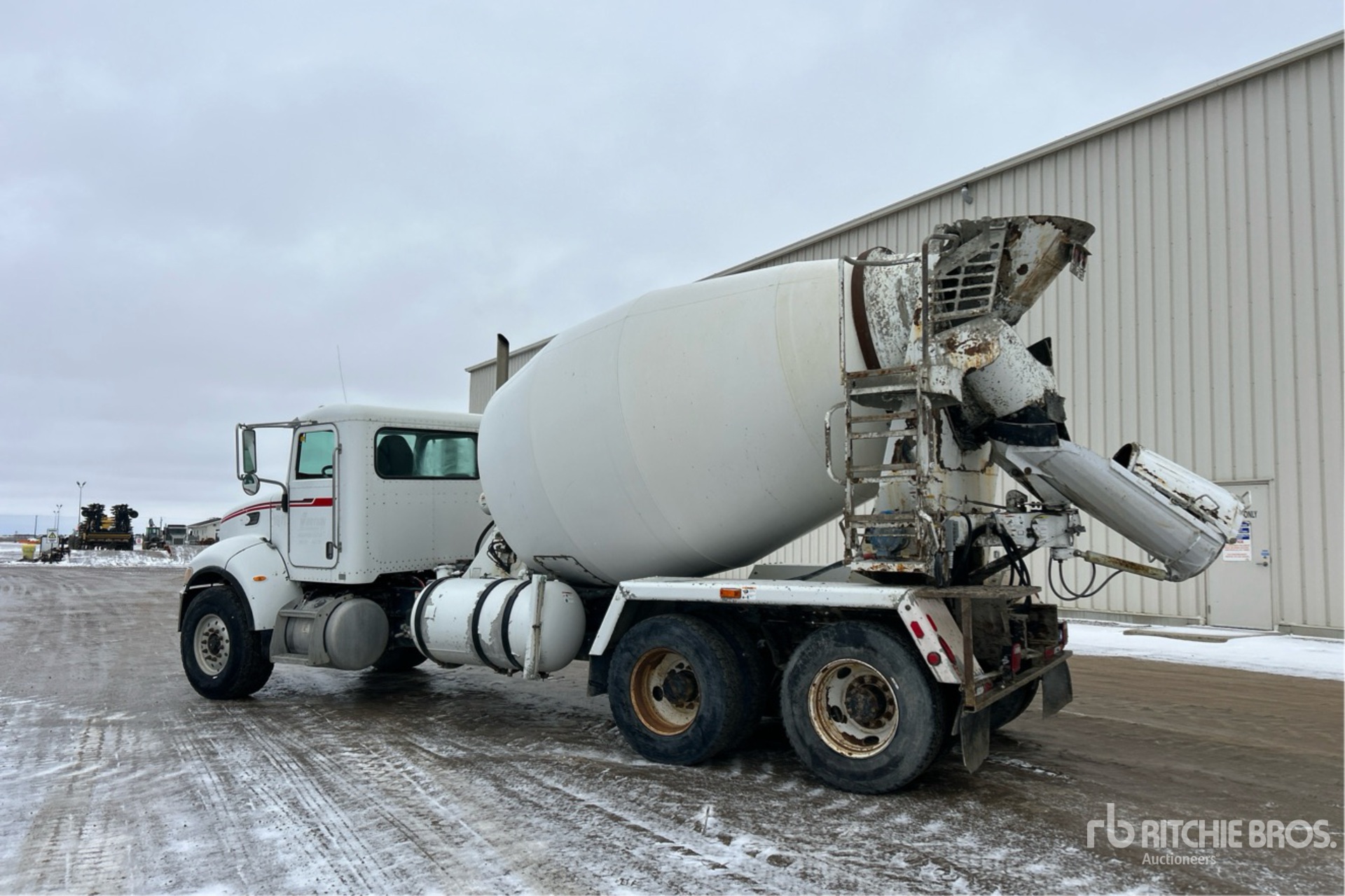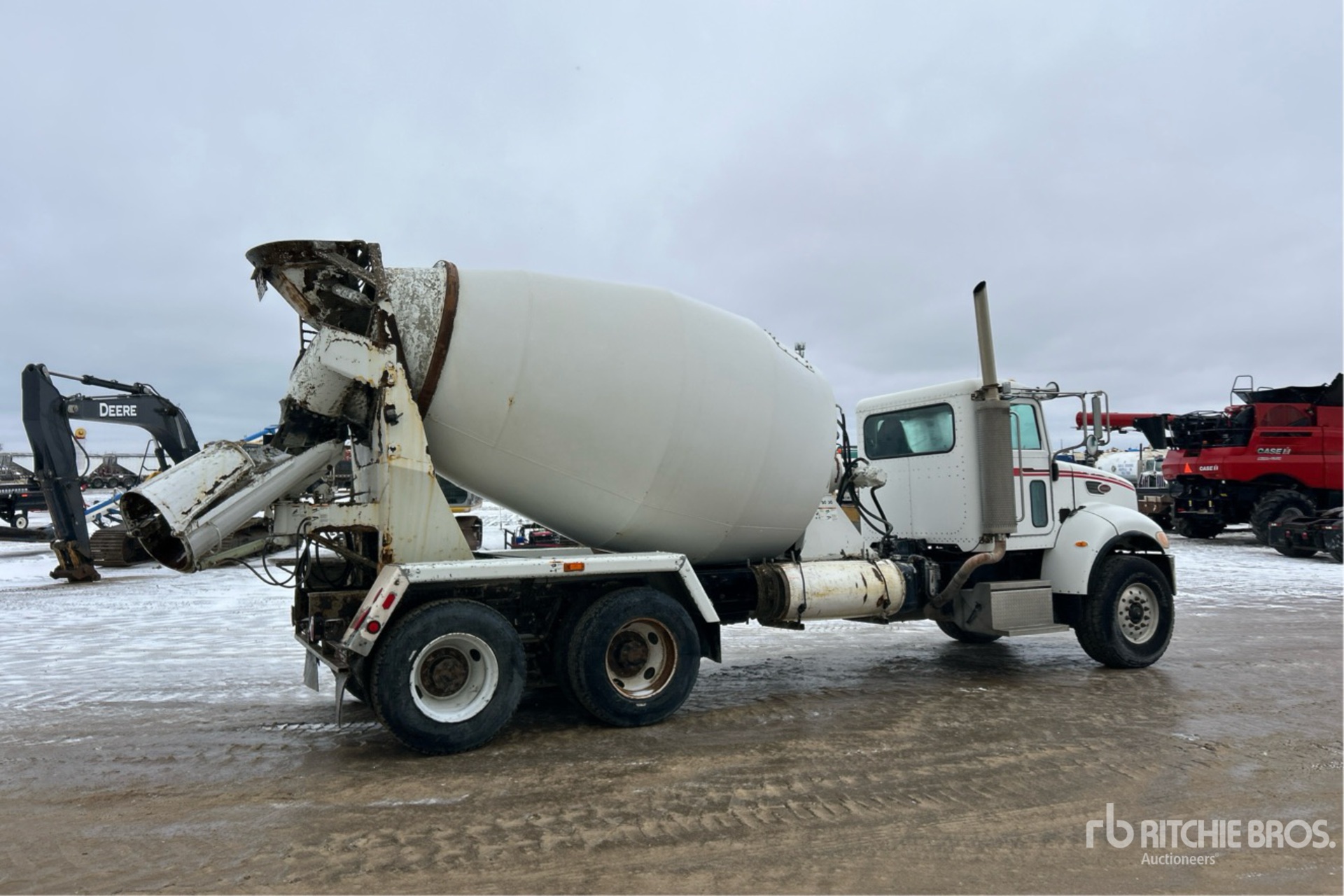 Cummins ISC 6 Cylinder 8.3 L Diesel 330 hp Engine, 2006 US EPA Label, CARB Compliant, Eaton Fuller RTO-11909ALL 9LL Manual Transmission, Differential Lock, 20000 lb Front Axle, 46000 lb Rears, Dana D46-170HP Drive Axles, 5.25:1 Axle Ratio, 66000 lb GVWR, Aluminum Front Wheels, 425/65R22.5 Front Tires, 11R22.5 Rear Tires, Double Frame, Rubber over Walking Beam Suspension, 239 in Wheelbase, Terex RD3000 14 cyd Mixer Unit, 3 Removable Chutes, Remote Control w/Cord