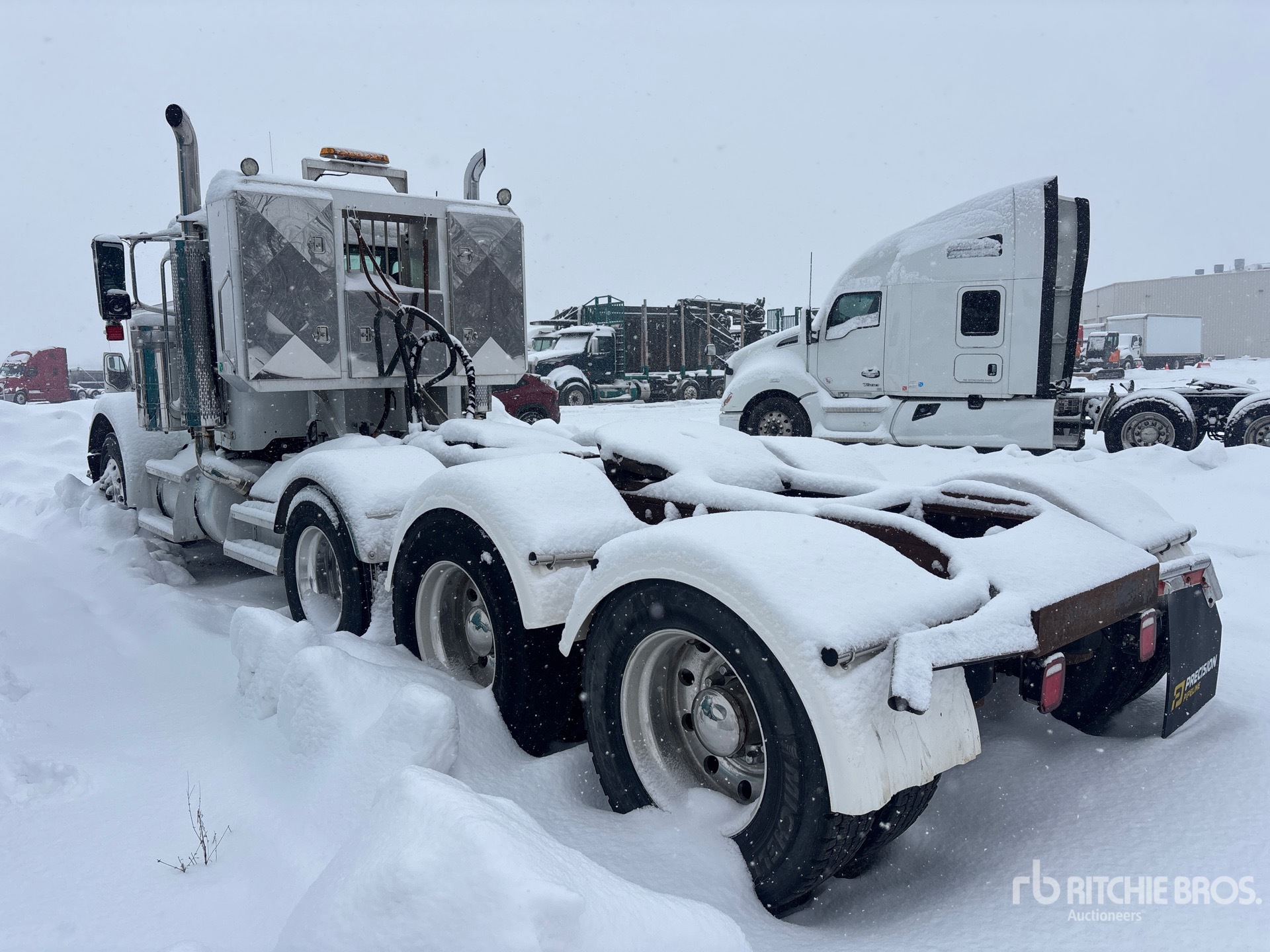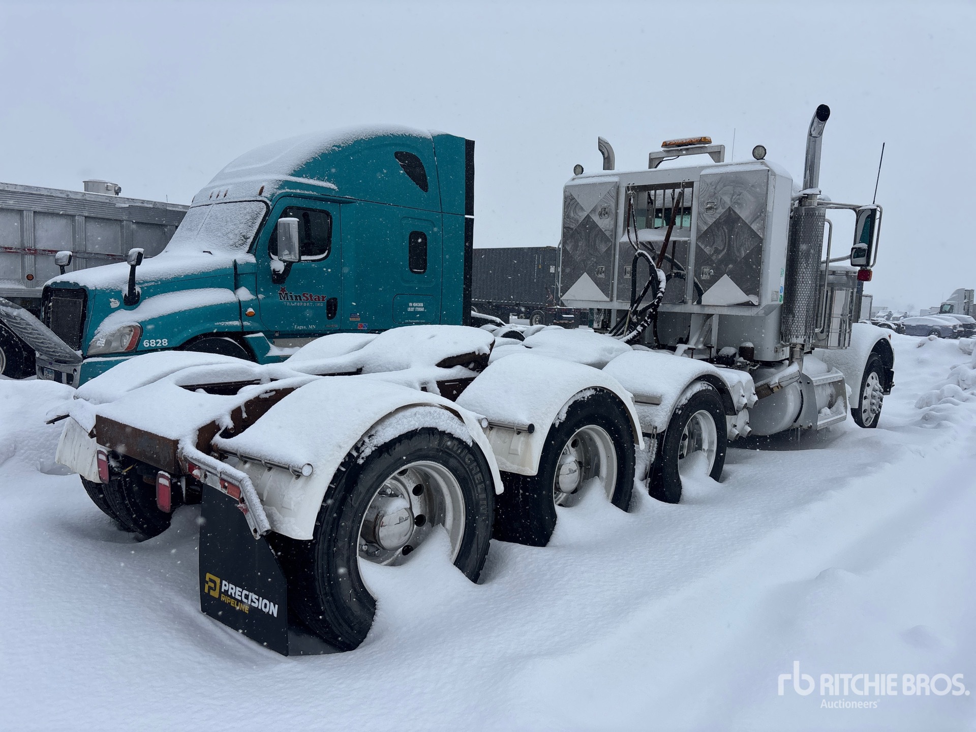 Cat C15 6 Cylinder 15 L Diesel 410 hp Engine, 2006 US EPA Label, 23810 Engine hrs, Engine Brake, Eaton Fuller RTLO-18918B 18-Speed Manual Transmission, Double Differential Locks, 14320 lb Front Axle, 68700 lb Rears, Dana D46-170HI Drive Axles, 3.91:1 Axle Ratio, 74600 lb GVWR, Air Ride Cab, Aluminum Wheels, 11R24.5, Air Lift Pusher Axle, Air Trac Air Ride Suspension, 260 in Wheelbase, Wet Kit, Air Sliding 5th Wheel, Headache Rack, Dual Fuel Tanks, EQUIPMENT-FROM-PRECISION-PIPELINE