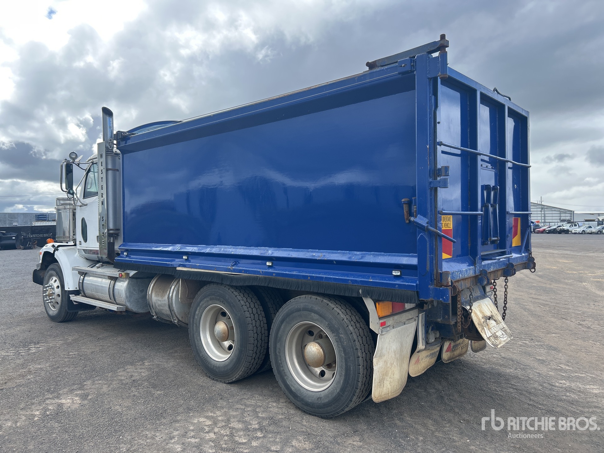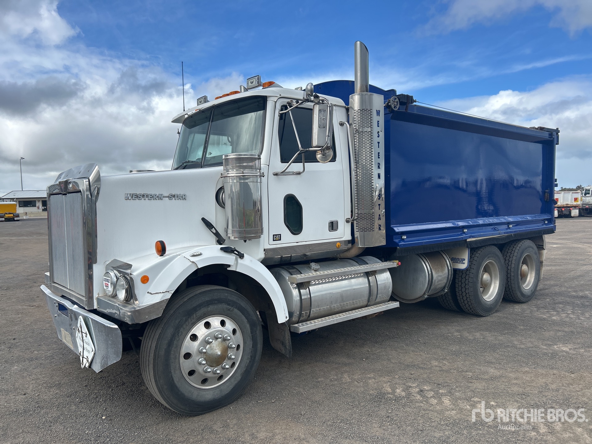 Cat C15 6 Cylinder Diesel 435 hp Engine, 27687 Engine hrs, Engine Brake, Eaton Fuller 18-Speed Transmission, Double Differential Locks, 295/80R22.5 Front Tires, 11R22.5 Rear Tires, 8-Bag Air Ride Suspension, 5300 mm Wheelbase, PTO, Hydraulic System, 4600 mm Long x 1700 mm High Steel Body, Manual Roll Tarp, 2-Way Tailgate, Rear Hydraulics, Tailgate Chute, Ringfeder