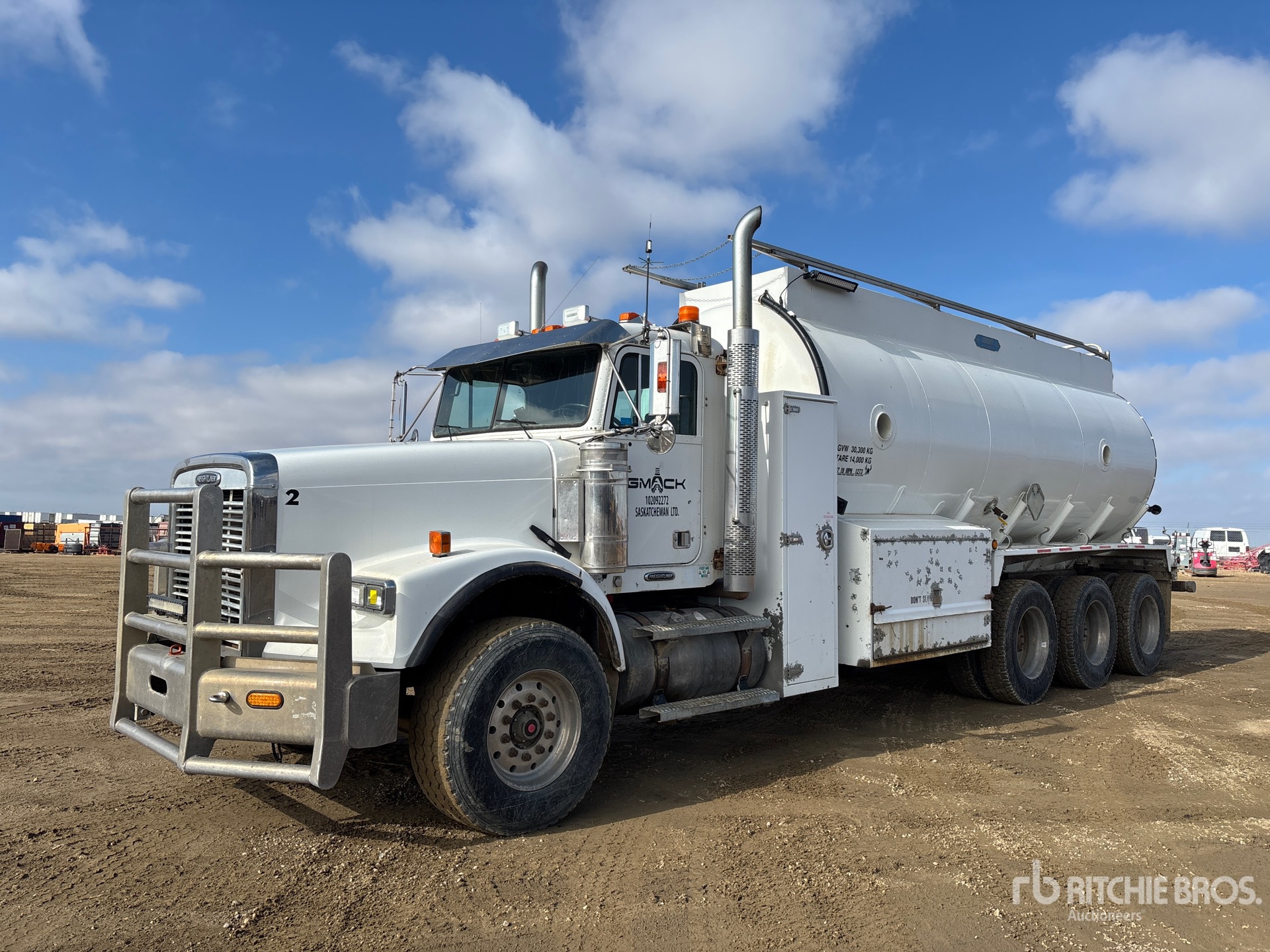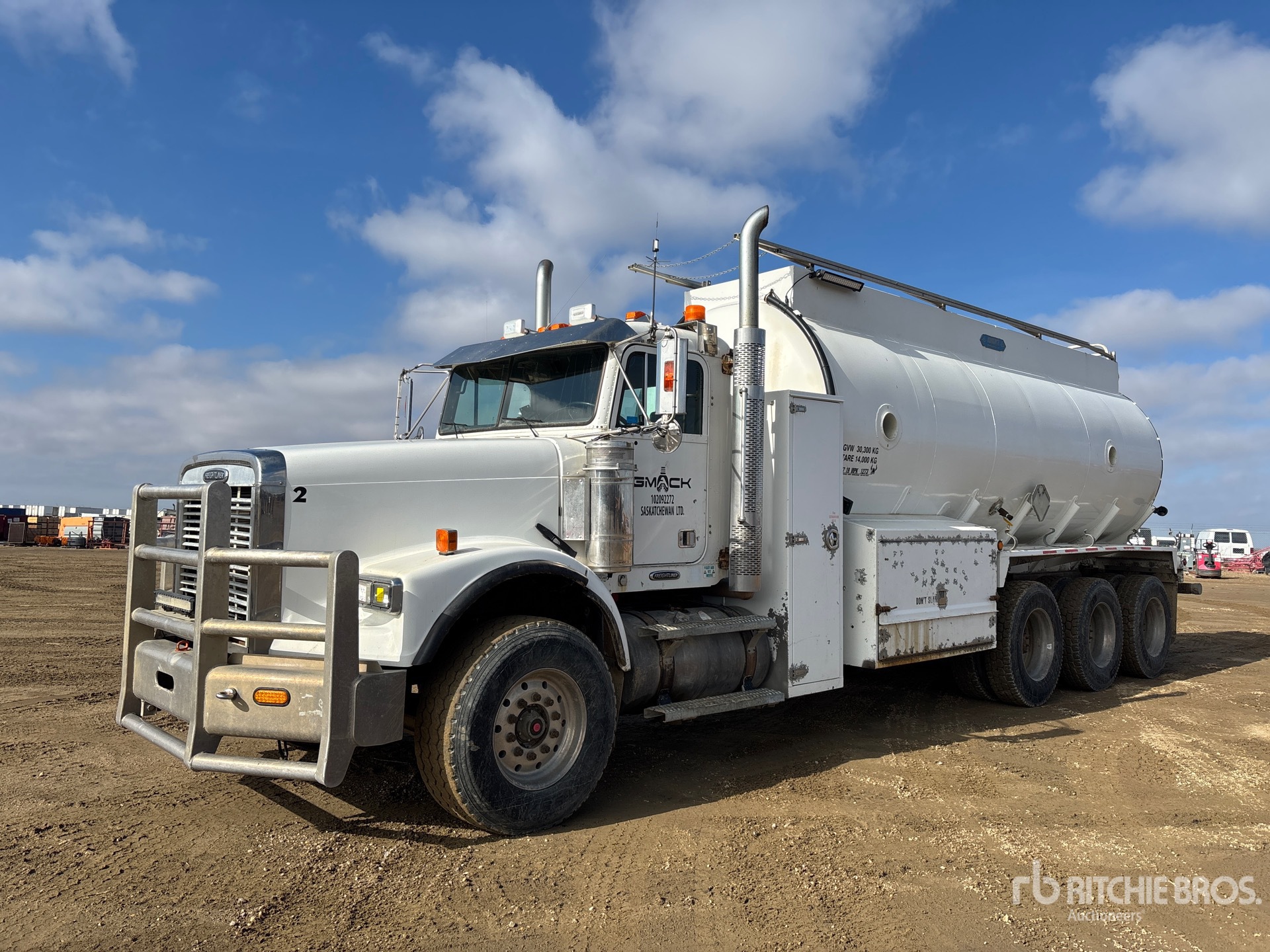 Detroit Series 60 6 Cylinder 14 L Diesel 515 hp Engine, 2008 US EPA Label, 18845 Engine hrs, Engine Brake, Eaton Fuller RTLO-16918B 18-Speed Manual Transmission, Double Differential Locks, 16000 lb Front Axle, Meritor RZ-166 Drive Axles, 4.30:1 Axle Ratio, Aluminum Wheels, 385/65R22.5 Front Tires, 11R24.5 Rear Tires, Airliner Air Ride Suspension, 272 in Wheelbase, PTO, 2008 22500 L Tank, 2 Compartments, TC407 Code, Catwalk, Hydraulic Driven Pump, Rear Spray