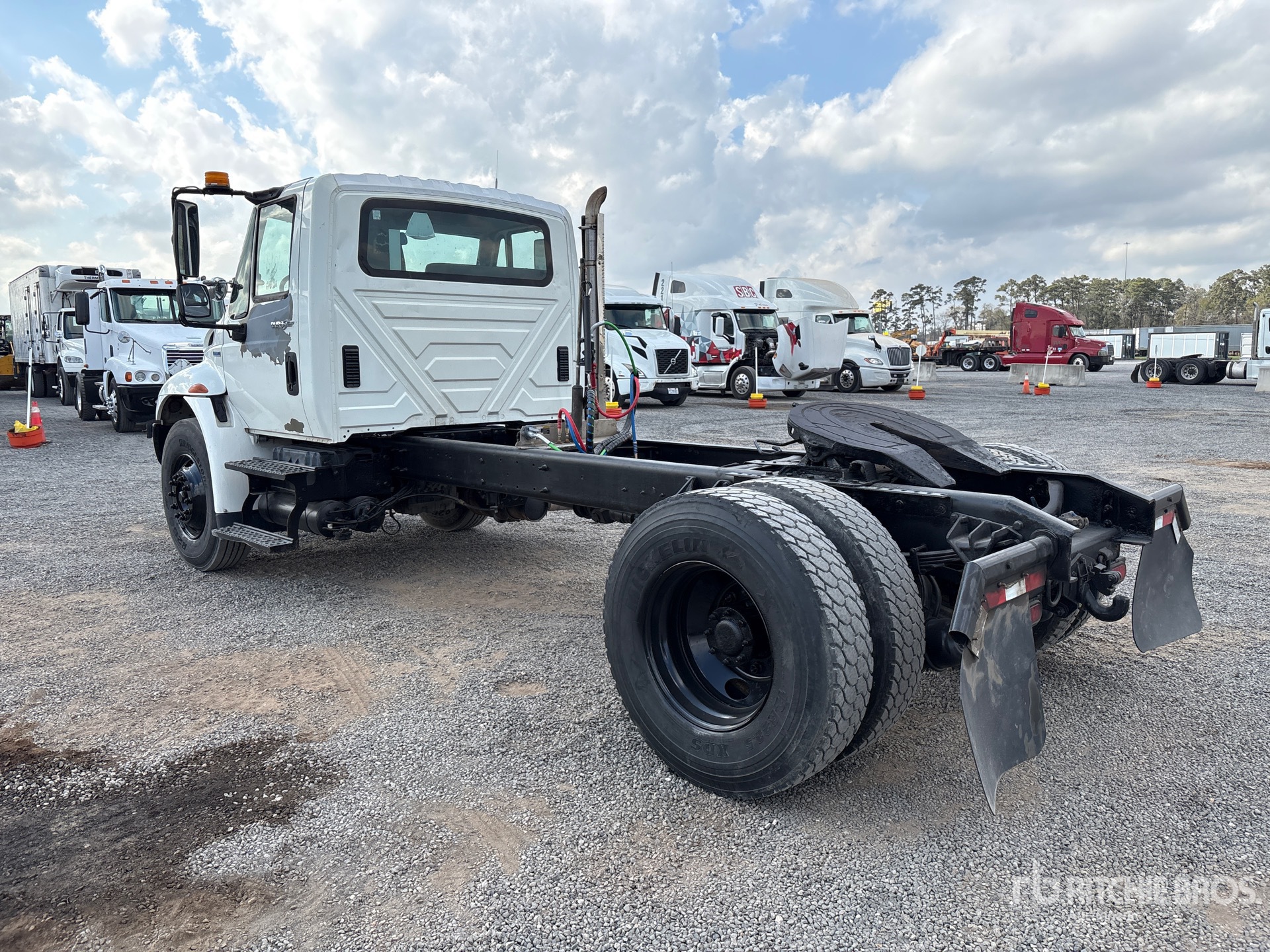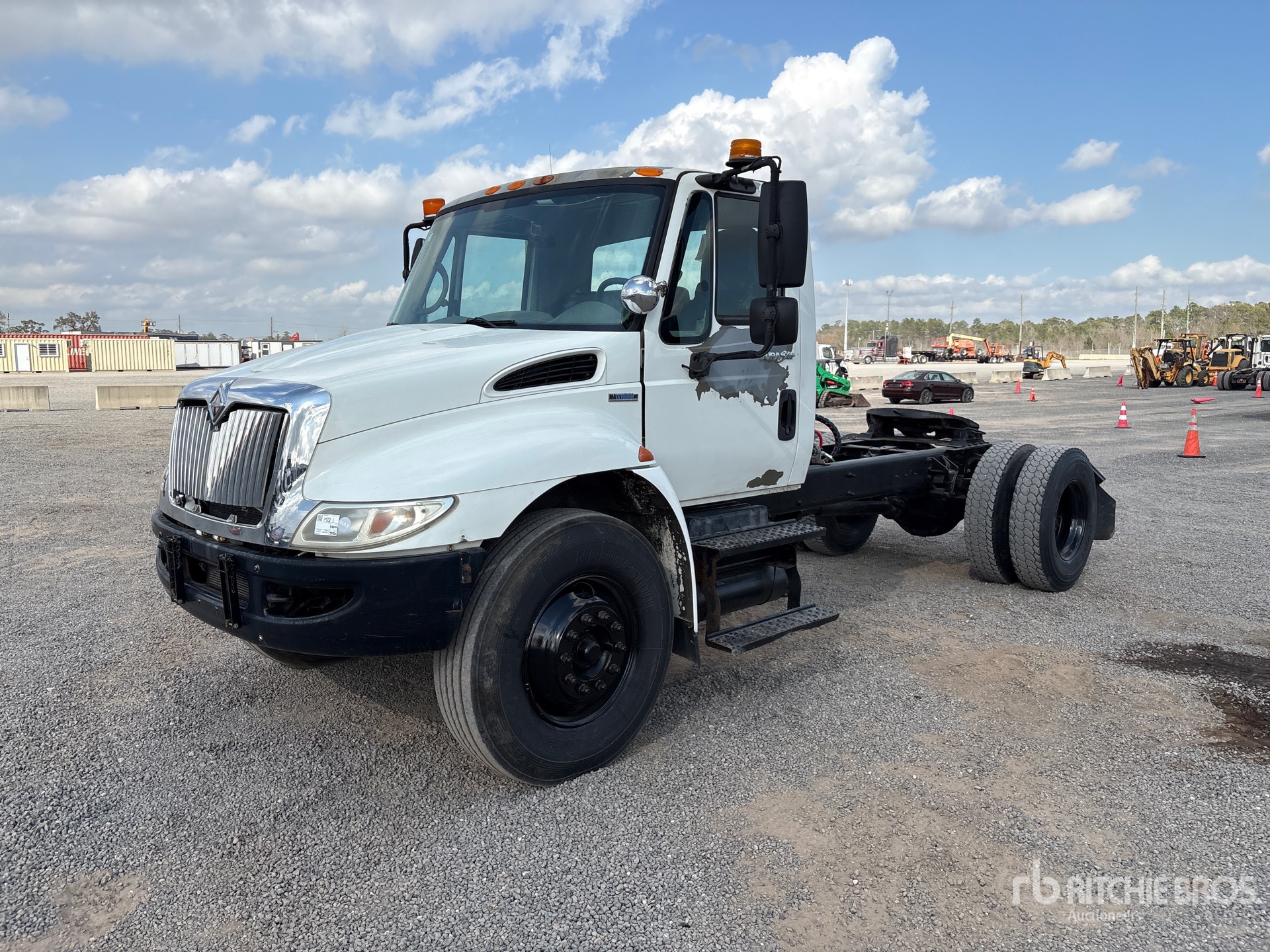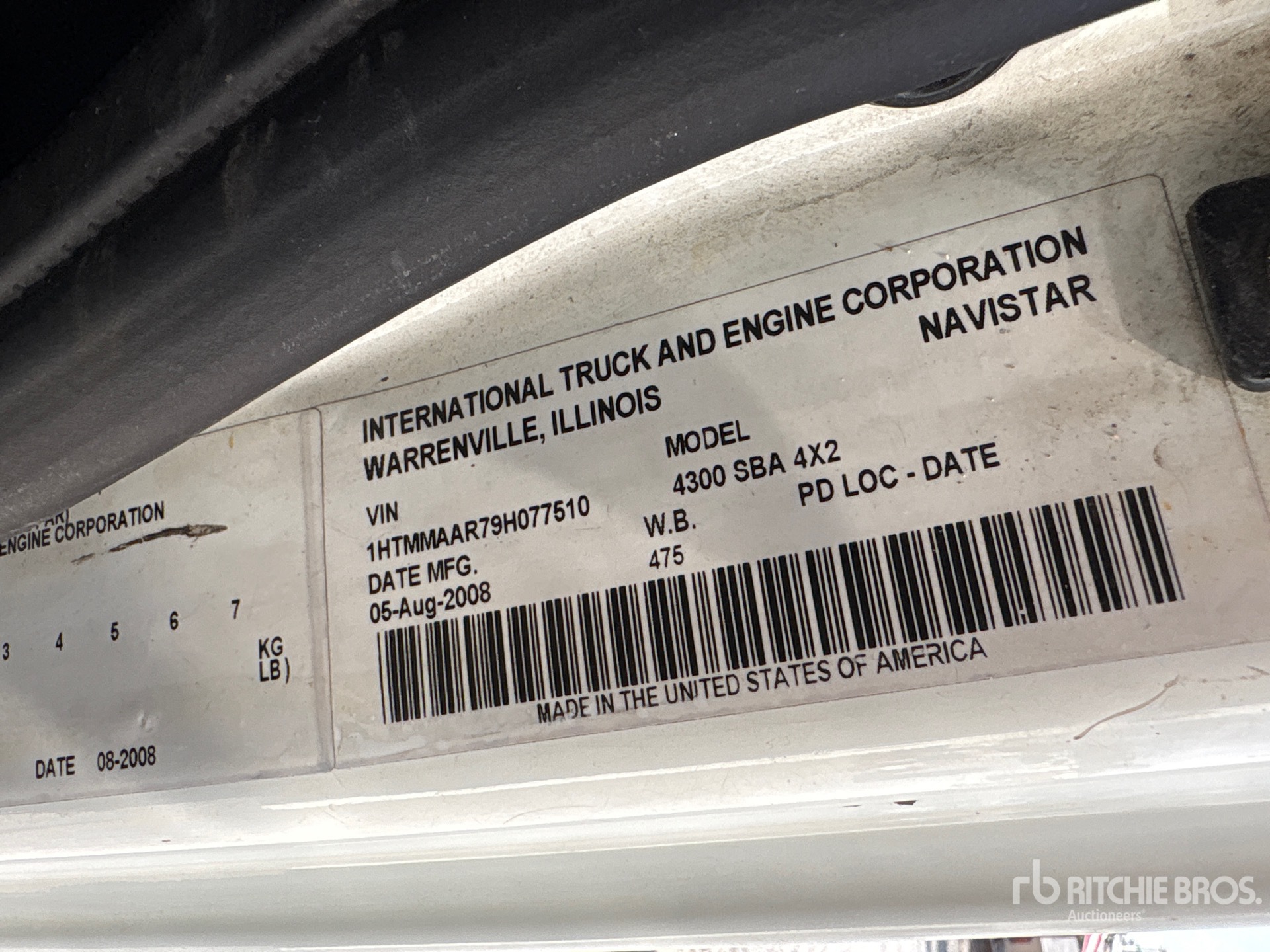 International MaxxForce DT 7.6 L Diesel 255 hp Engine, 2008 US EPA Label, 6379 Engine hrs, Allison Automated Transmission, 14000 lb Front Axle, 23000 lb Rears, 37000 lb GVWR, 12R22.5, Spring Suspension, 211 in Wheelbase, 121 in Cab to Axle, 156 in Cab to End of Frame, Ringfeder