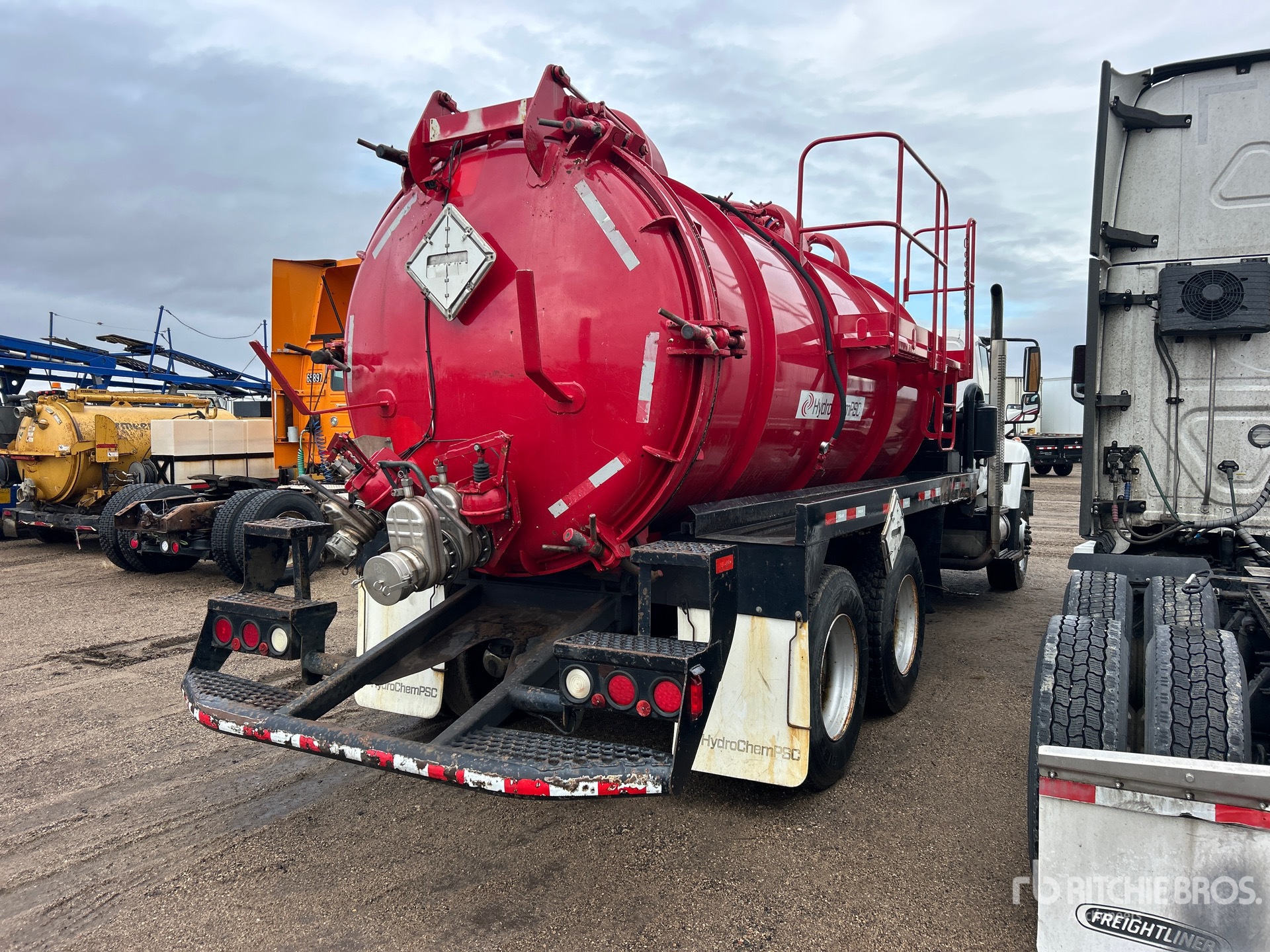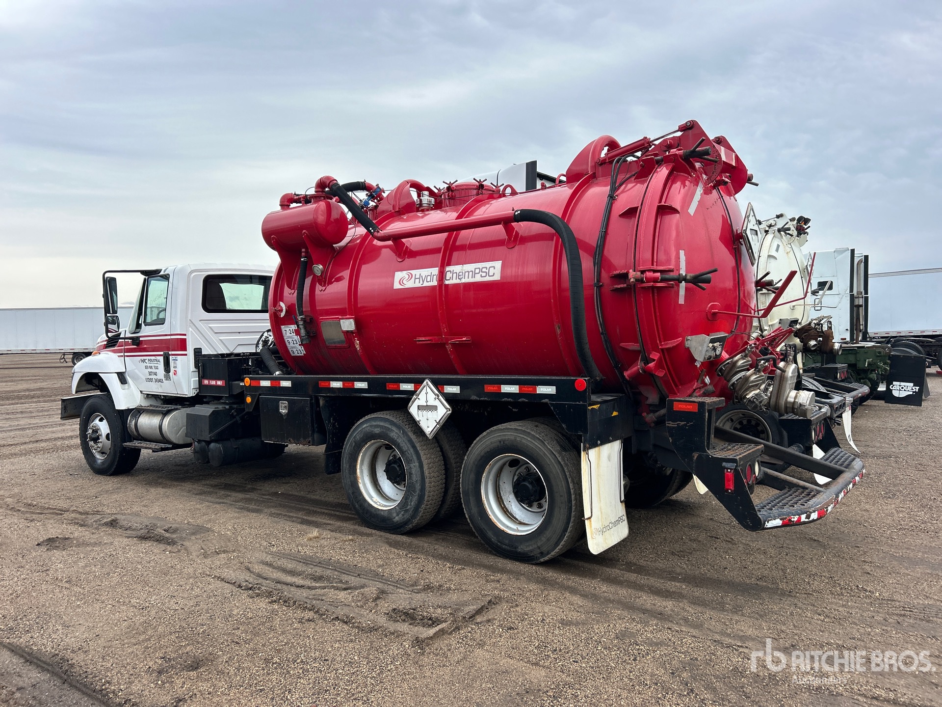 International 6 Cylinder Diesel Engine, Eaton Fuller 8LL Manual Transmission, 16000 lb Front Axle, 40000 lb Rears, 56000 lb GVWR, 315/80R22.5 Front Tires, 11R22.5 Rear Tires, Spring over Walking Beam Suspension, 225 in Wheelbase, PTO, Steel 3000 gal Debris Tank, Hydraulic Lift Tailgate, Manual Tailgate Locks