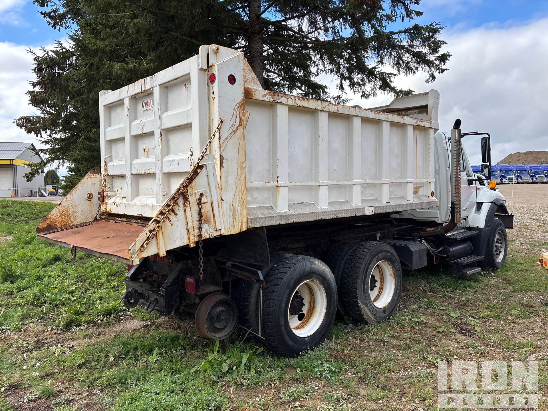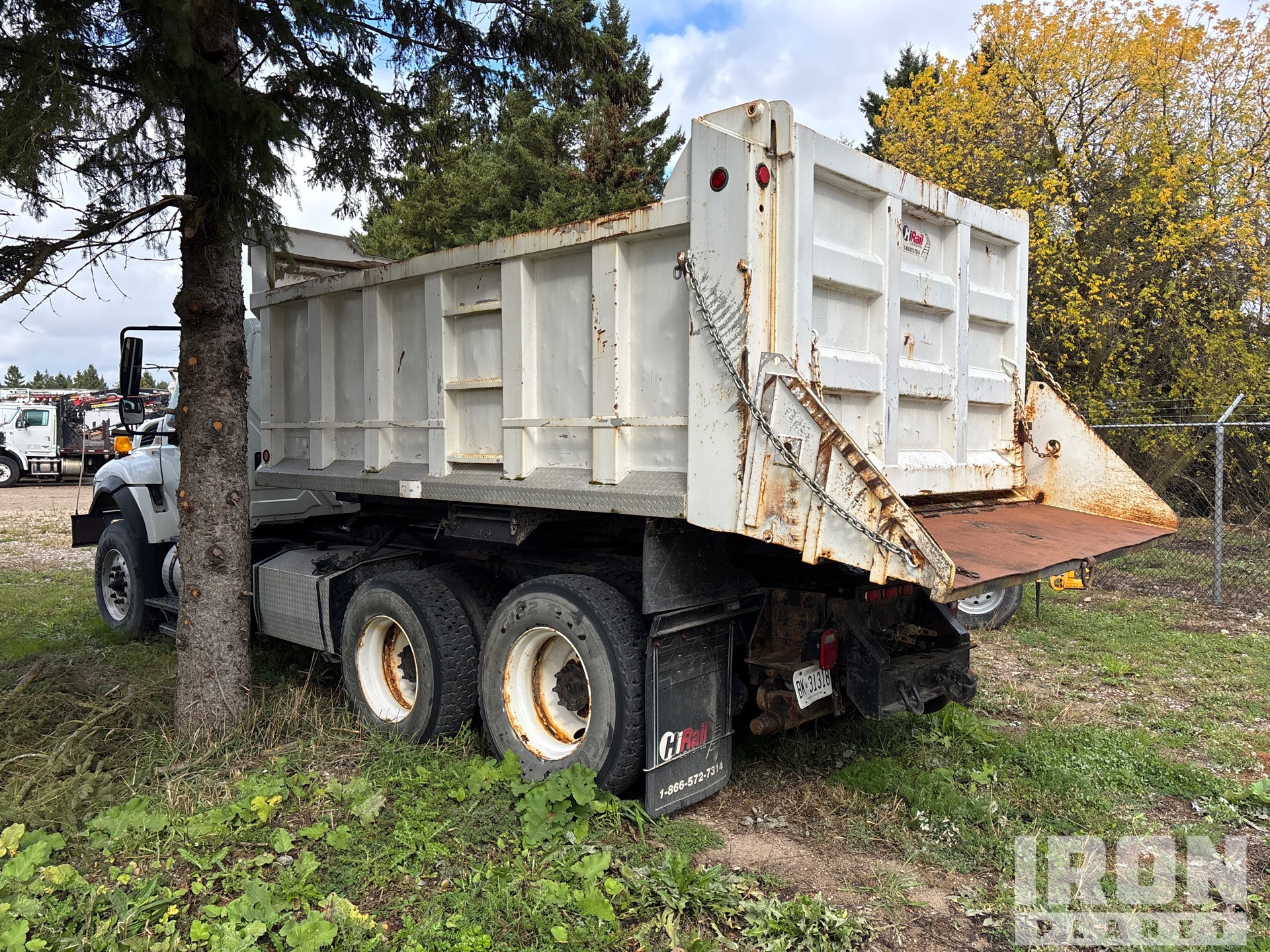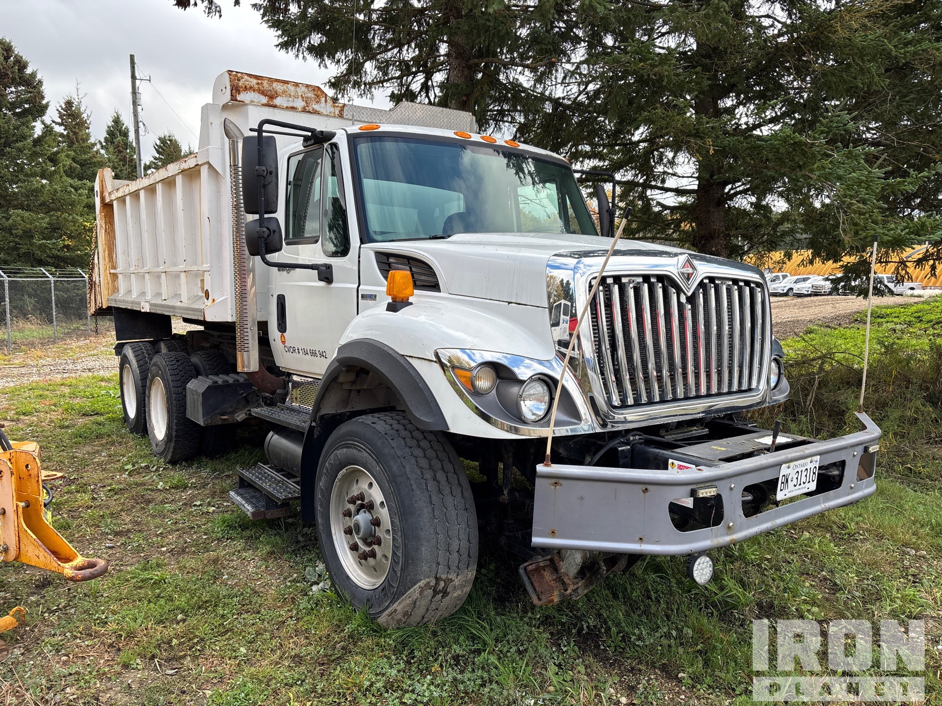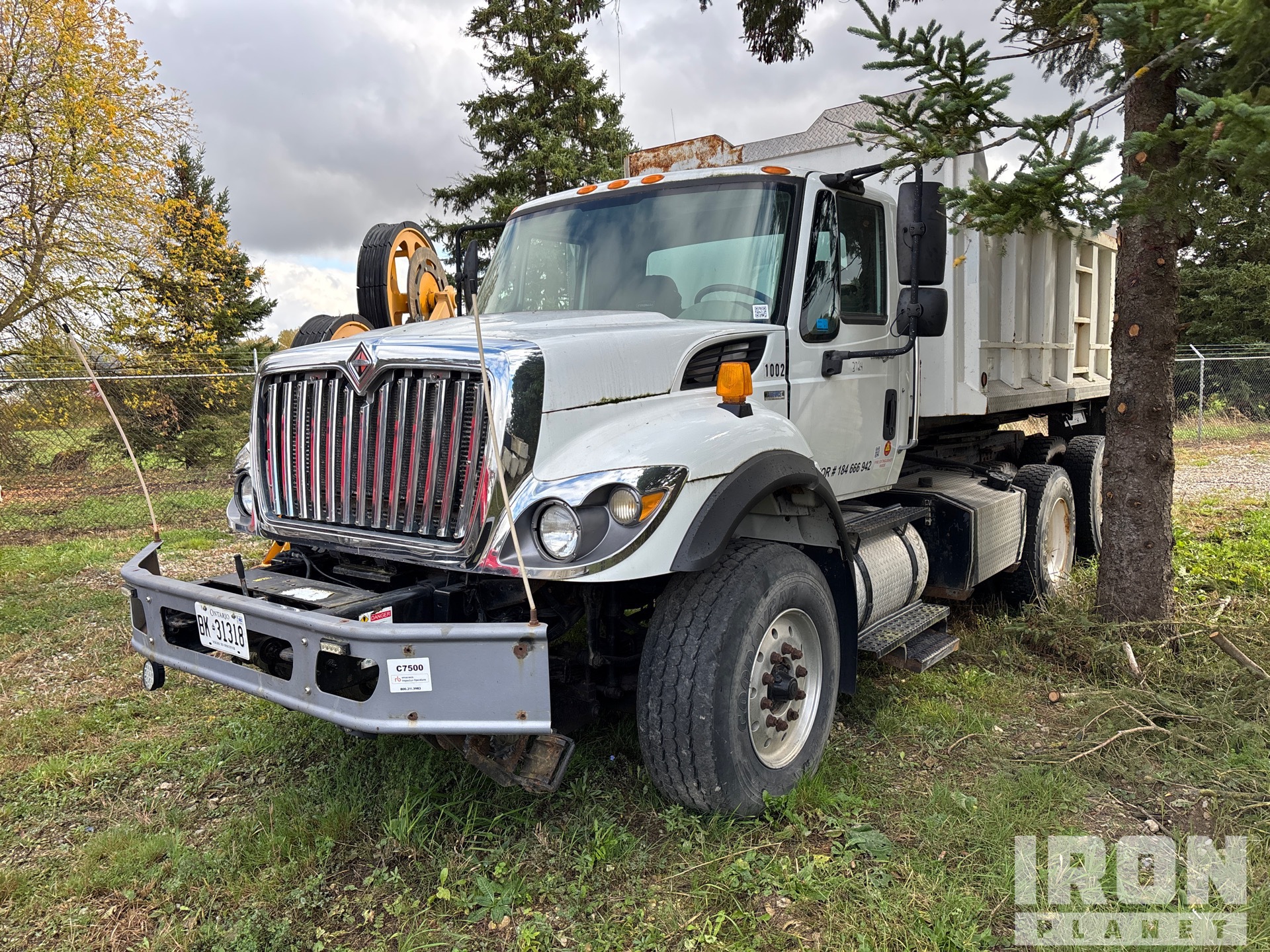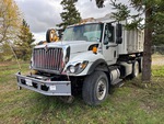 International Maxxforce 10 9.3 L Diesel 350 hp Engine, 2009 US EPA Label, 12089 Engine hrs, Engine Brake, Eaton Fuller 8LL Manual Transmission, 18000 lb Front Axle, 40000 lb Rears, 58000 lb GVWR, Air Ride Cab, Aluminum Front Wheels, 385/65R22.5 Front Tires, 11R22.5 Rear Tires, Dual Steering Boxes, Double Frame, Hendrickson Haulmaax Suspension, 184 in Wheelbase, PTO, 14 ft Long x 4 ft 2 in High Body, Pintle Hitch, Hi-Rail System, Rotating Dump Body