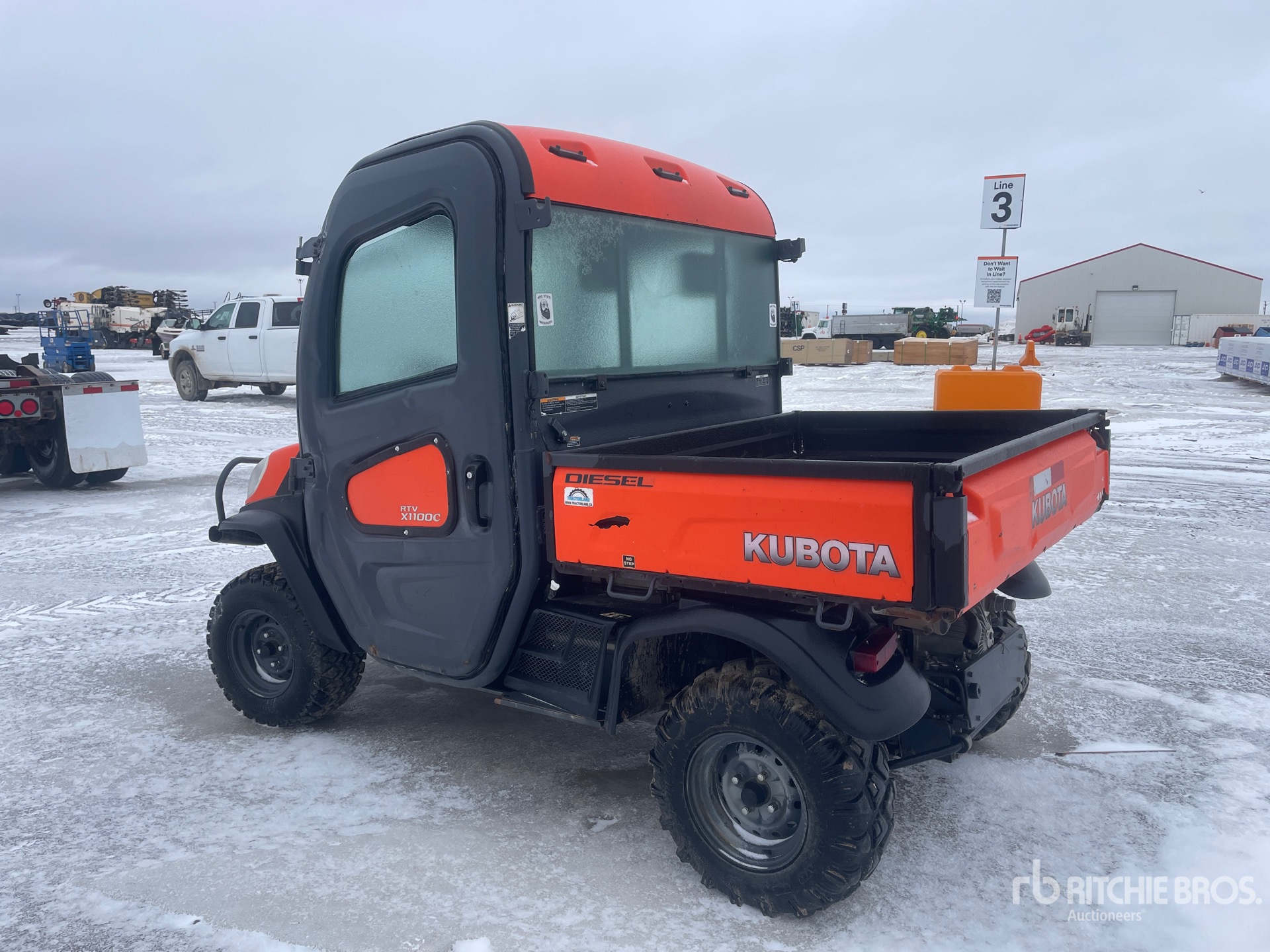 Enclosed Cab, Air Conditioner, 2 Passenger, Windshield, Rear Screen, Brush Guard, Hitch Receiver, Hydraulic Dump Bed, 2011 US EPA Label, CARB Compliant, Kubota 3 Cylinder Diesel Engine