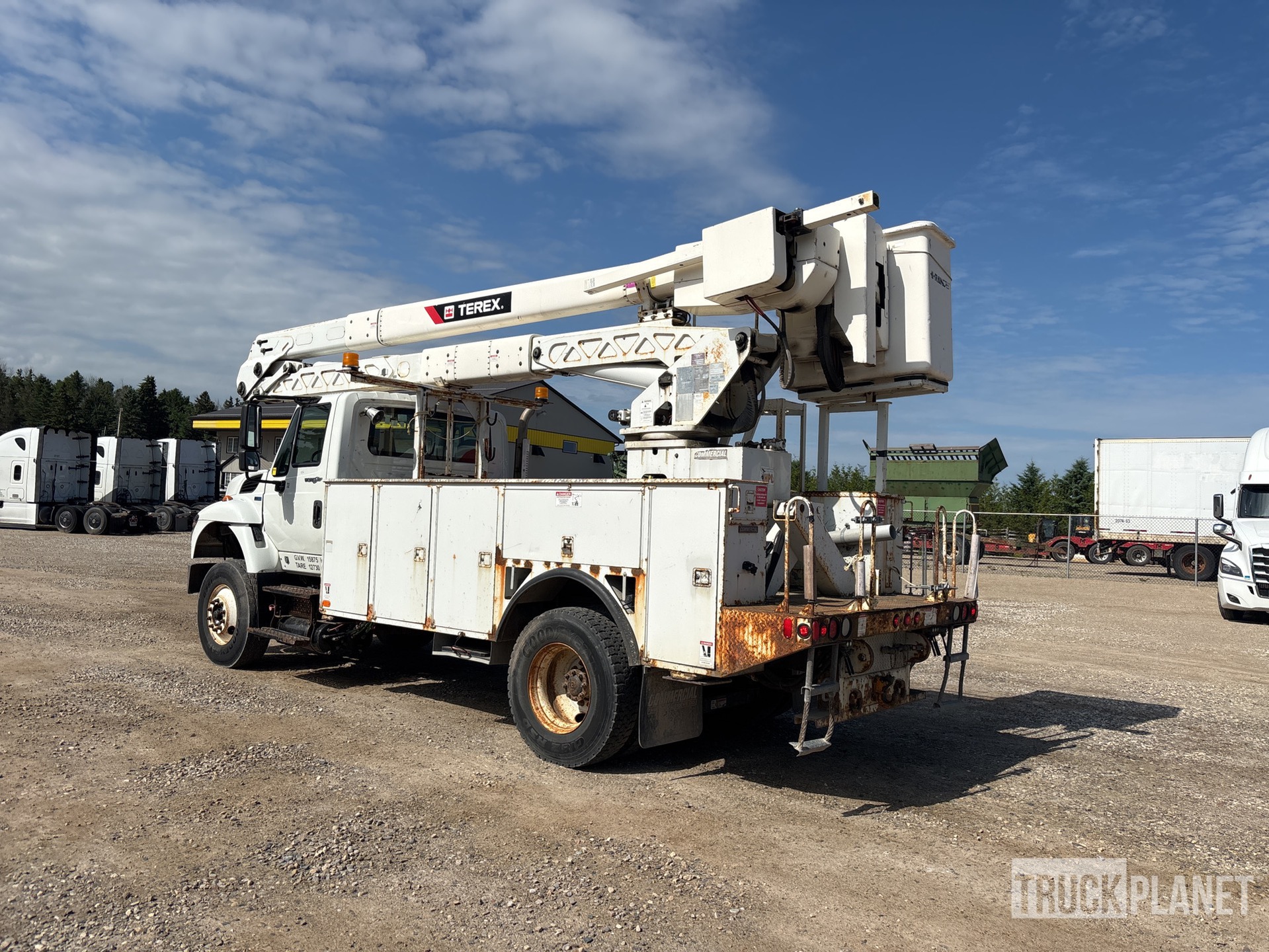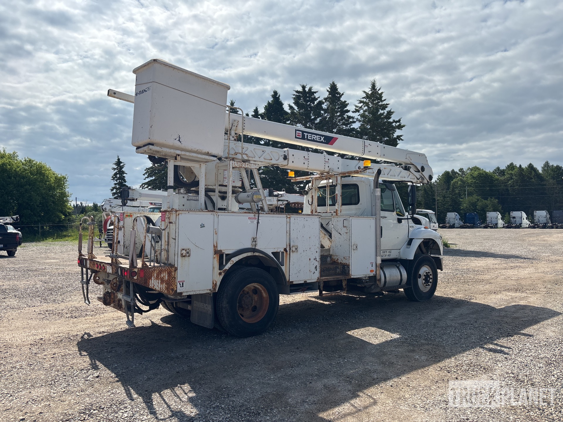 International 6 Cylinder 9.3 L Diesel 330 hp Engine, 2012 US EPA Label, Requires Diesel Exhaust Fluid, 8921 Engine hrs, Allison Automatic Transmission, Differential Lock, 14000 lb Front Axle, 21000 lb Rears, 35000 lb GVWR, Air Ride Cab, 12R22.5 Front Tires, 11R22.5 Rear Tires, Hendrickson Air Ride Suspension, 187 in Wheelbase, PTO, 700 lb Capacity, Rear Mounted, Insulated Two-Person Articulating-Telescopic Boom, Lower Boom Fiberglass Insert, Utility Body, Boom Tip Mounted Winch, A-Outriggers, Rear Outriggers, 16 ft x 94 in Bed, Pintle Hitch