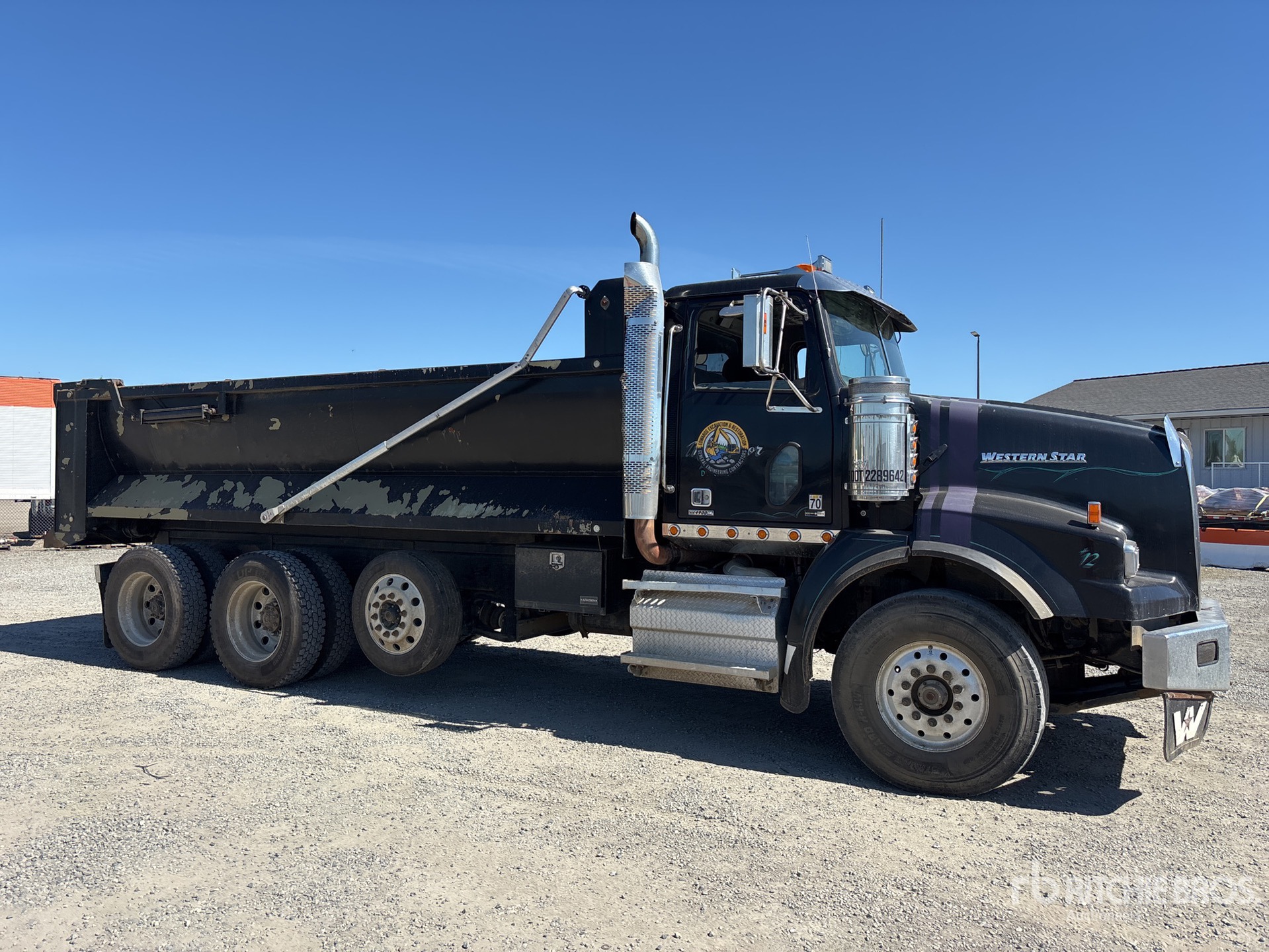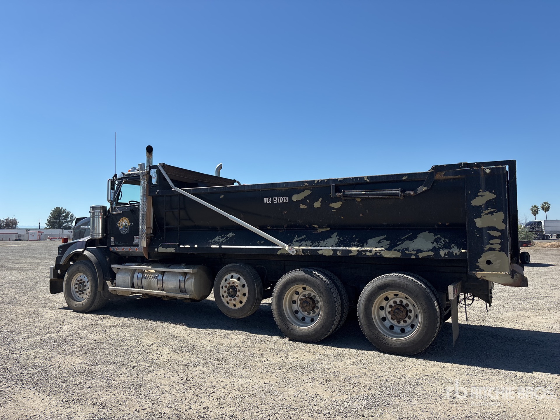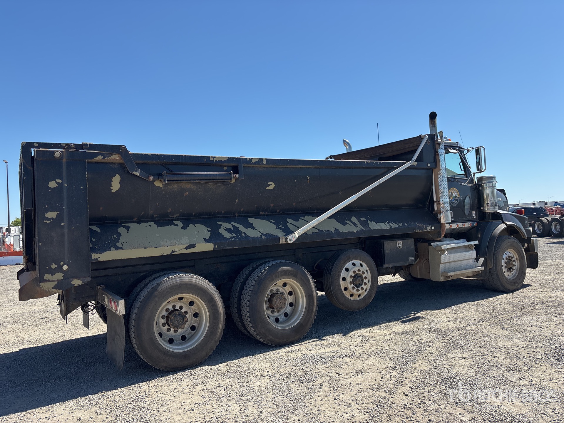 Detroit DD15 6 Cylinder 14.8 L Diesel Engine, 2011 US EPA Label, Requires Diesel Exhaust Fluid, Engine Brake, Eaton Fuller Manual Transmission, 19840 lb Front Axle, 53550 lb Rears, 73390 lb GVWR, Aluminum Wheels, 425/65R22.5 Front Tires, 11R24.5 Rear Tires, Air Lift Pusher Axle, Air Ride Suspension, 234 in Wheelbase, 20 ft Long x 4 ft High Steel Body, Round Bottom