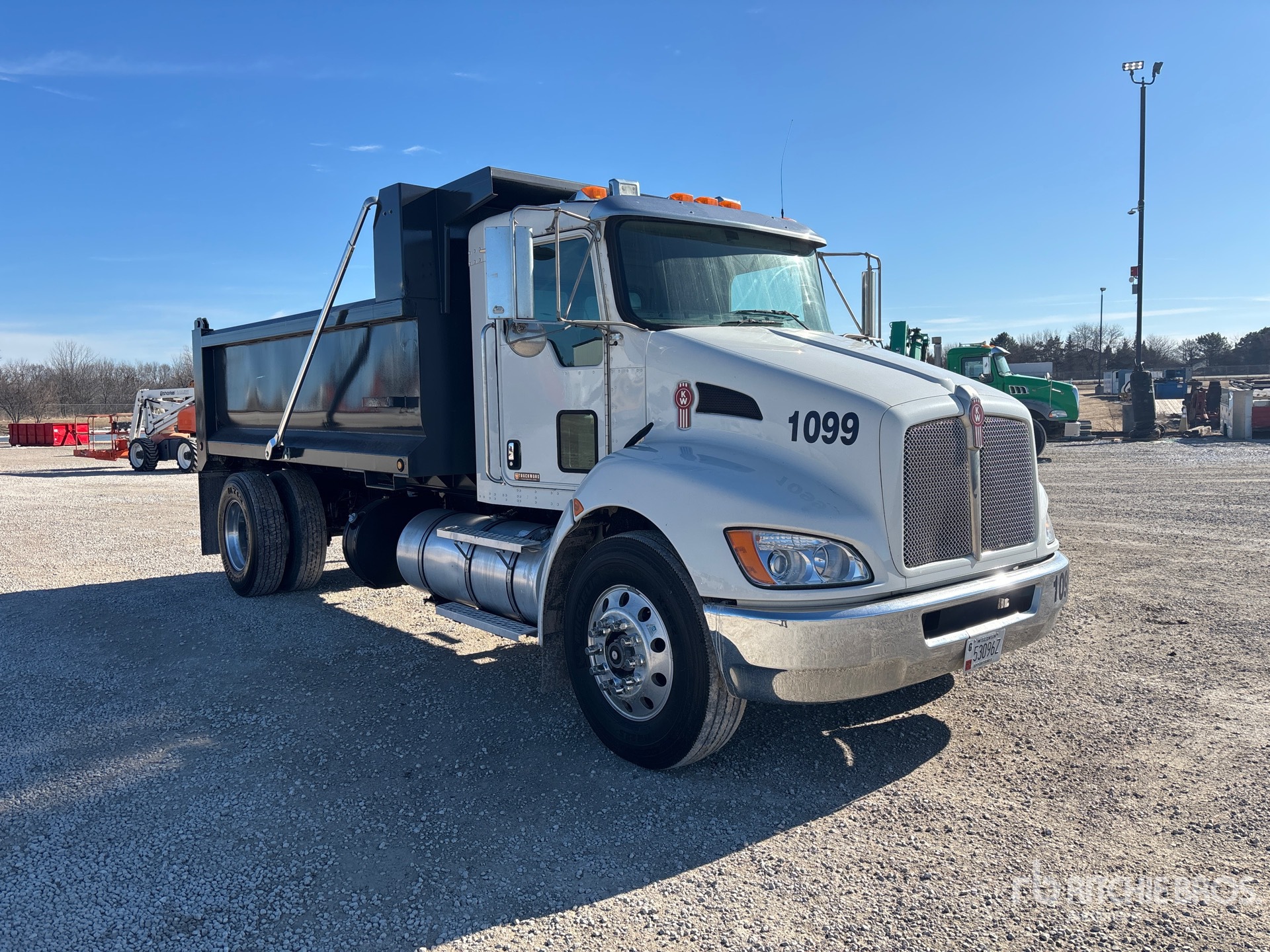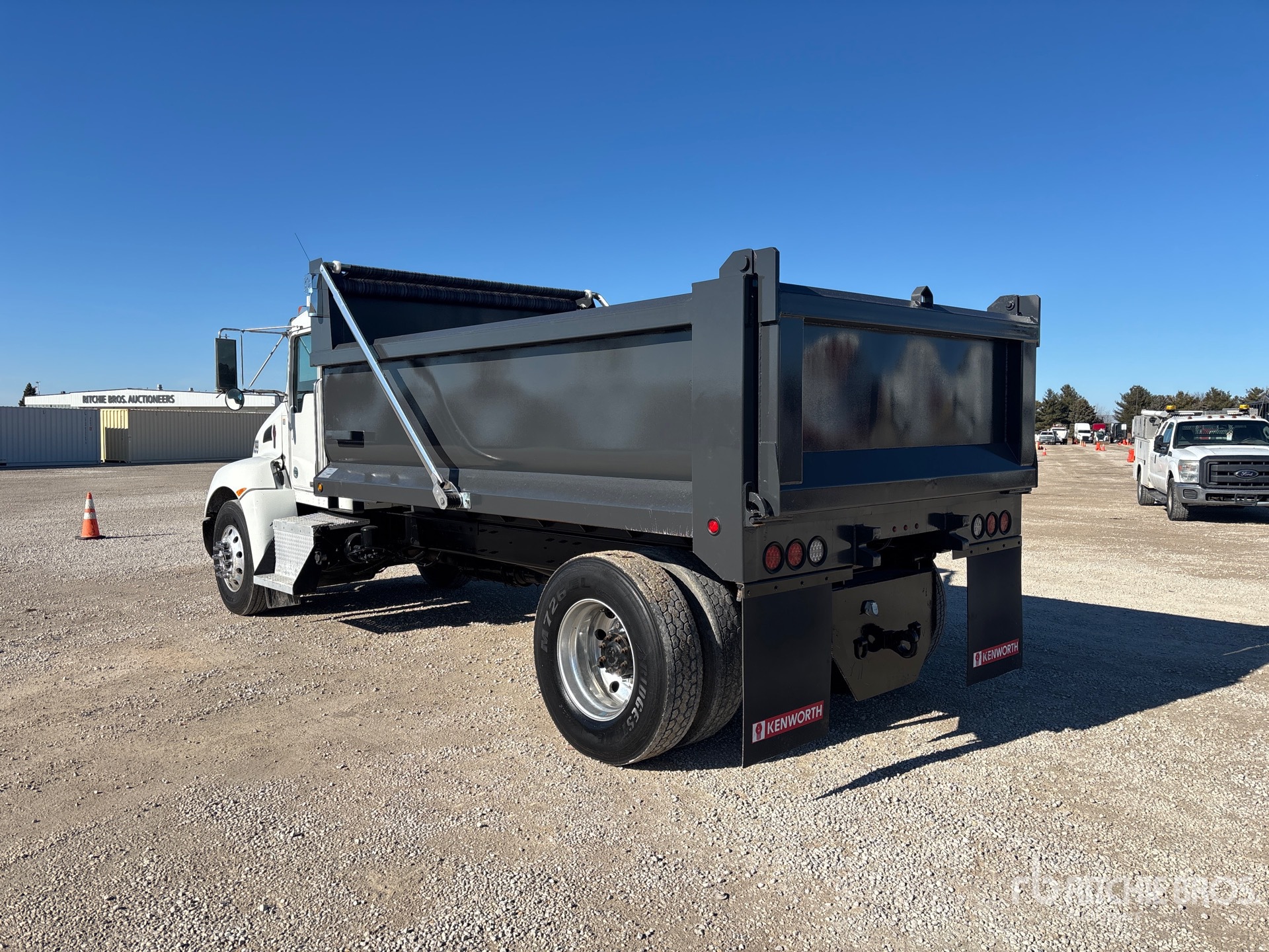 Located in Lane 9, Paccar ISB 6.7 L Diesel 260 hp Engine, 2012 US EPA Label, 9481.8 Engine hrs, Engine Brake, Automated Transmission, 10000 lb Front Axle, 16000 lb Rears, 26000 lb GVWR, Aluminum Outer Wheels, 11R22.5, Air Ride Suspension, 199 in Wheelbase, PTO, Global 13 ft 5 in Long x 36 ft High Steel Body, Round Bottom, Electric Roll Tarp, Swing Tailgate, Rear Hydraulics, Pintle Hitch