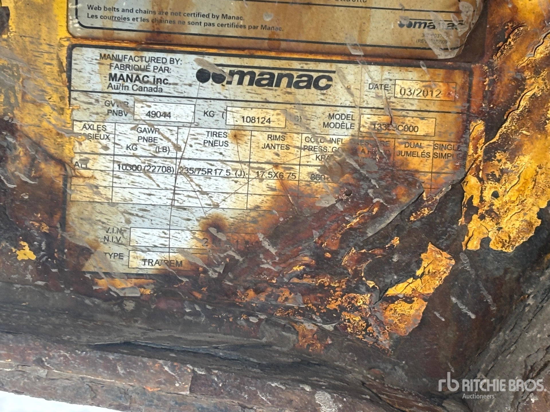 The detailed equipment information is limited in scope, and Ritchie Bros. Auctioneers has not inspected any aspects or components of the equipment other than those expressly set forth herein. Unless expressly stated, we make no representations or warranties, express or implied, concerning the equipment or its components, including without limitation any representations or warranties concerning functionality, conformity or compliance with any safety standard or requirement of any applicable authority or regulatory body, fitness for any particular purpose, or merchantability. You are strongly advised to perform your own detailed inspection of the equipment prior to bidding.
