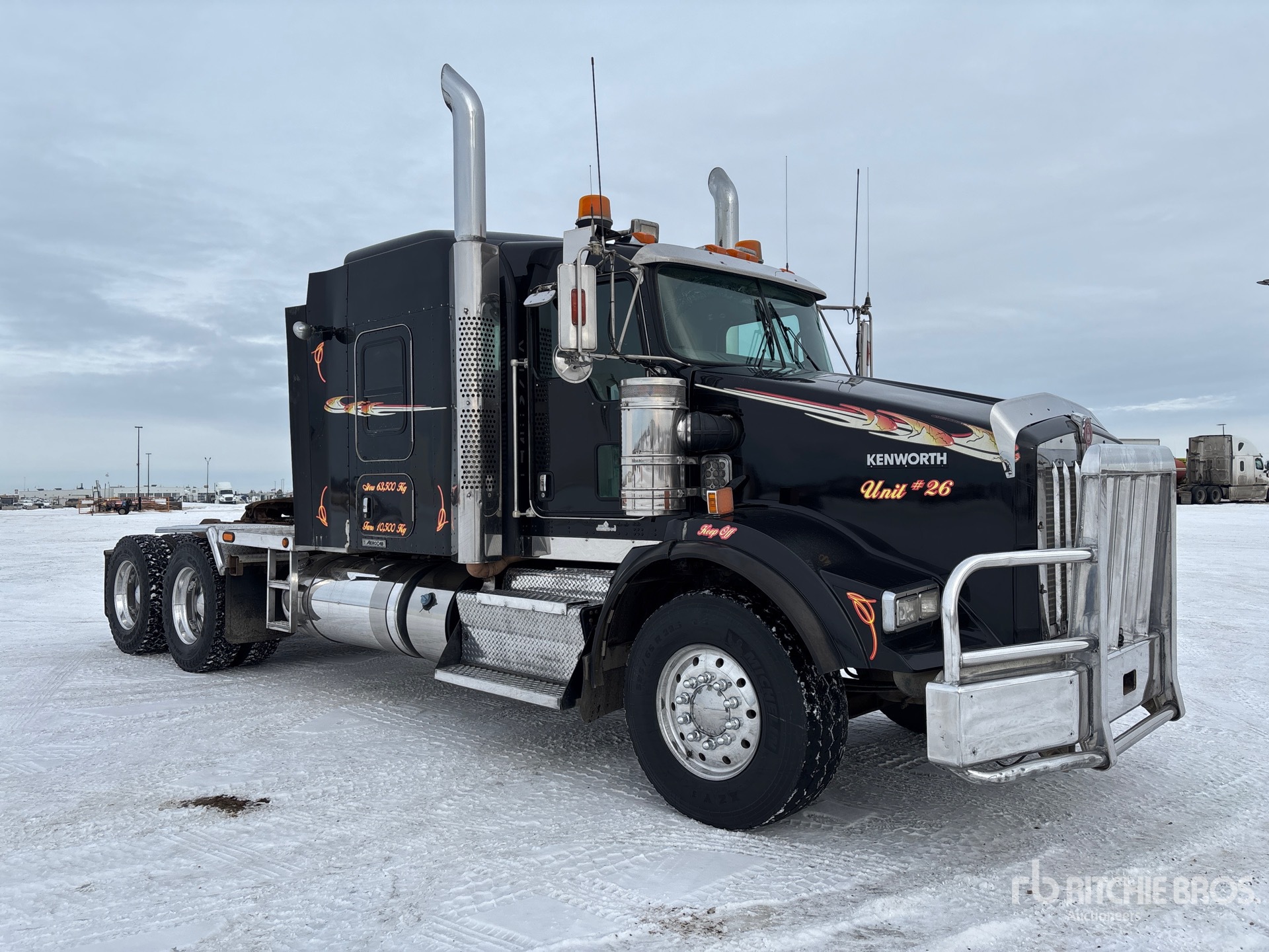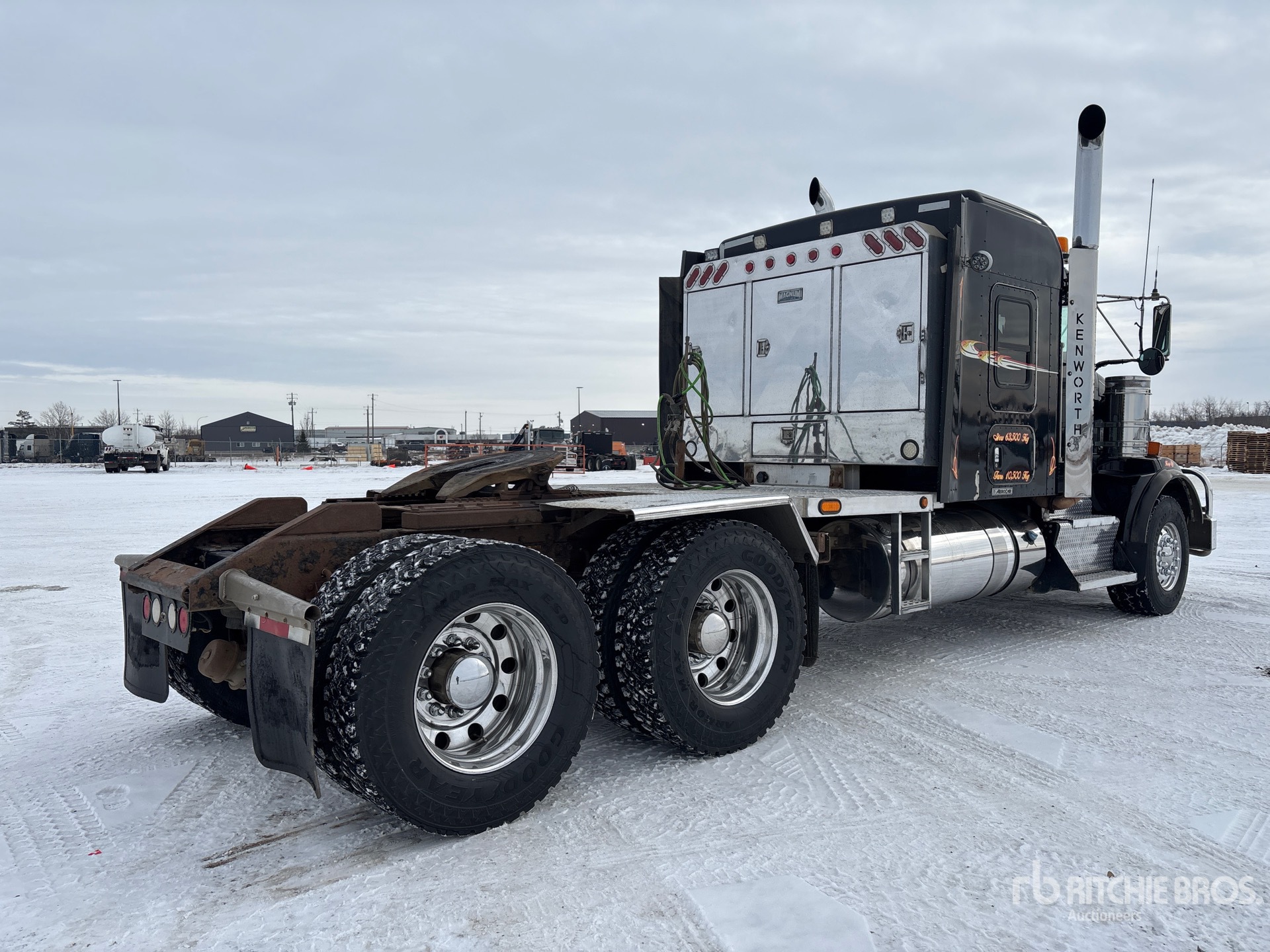 Cummins ISX15 600 hp Engine, Engine Coolant Heater, Positive Air Shutoff, 2013 US EPA Label, 22699 Engine hrs, Eaton Fuller RTLO-20918B 18-Speed Manual, 14600 lb Front Axle, Dana D46-170HP Drive Axles, 4.10:1 Axle Ratio, 46000 lb Rears, 60600 lb GVWR, Engine Brake, Double Differential Locks, 50 in Mid Roof Sleeper Cab, Bunk Heater, 246 in Wheelbase, 8-Bag Air Suspension, Aluminum Wheels, 385/65R22.5 Front Tires, 11R24.5 Rear Tires, Double Frame, Air Sliding 5th Wheel, Dual Fuel Tanks, Headache Rack