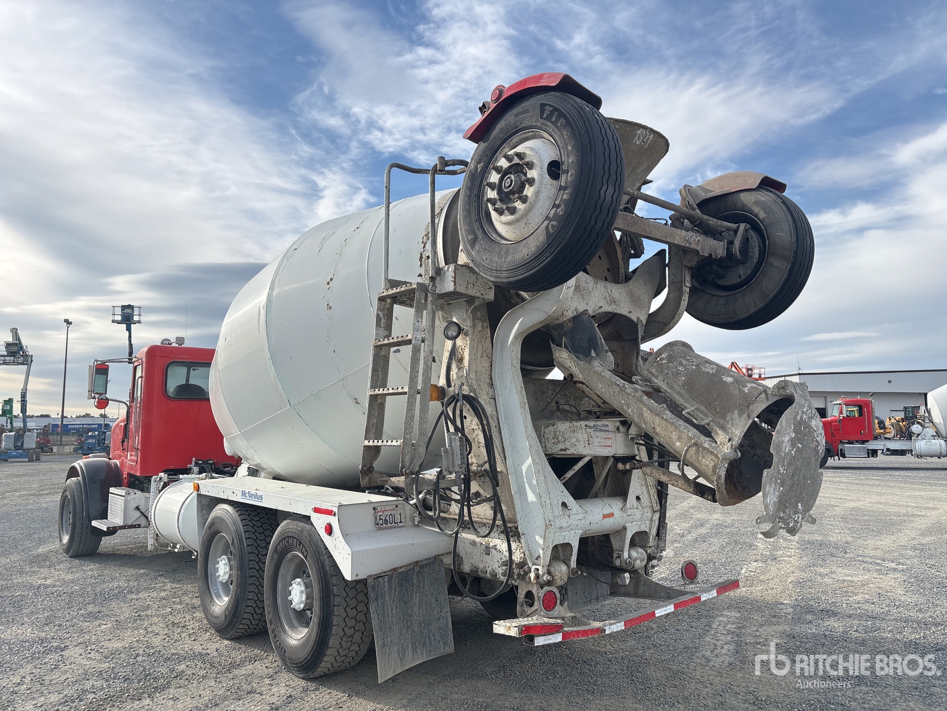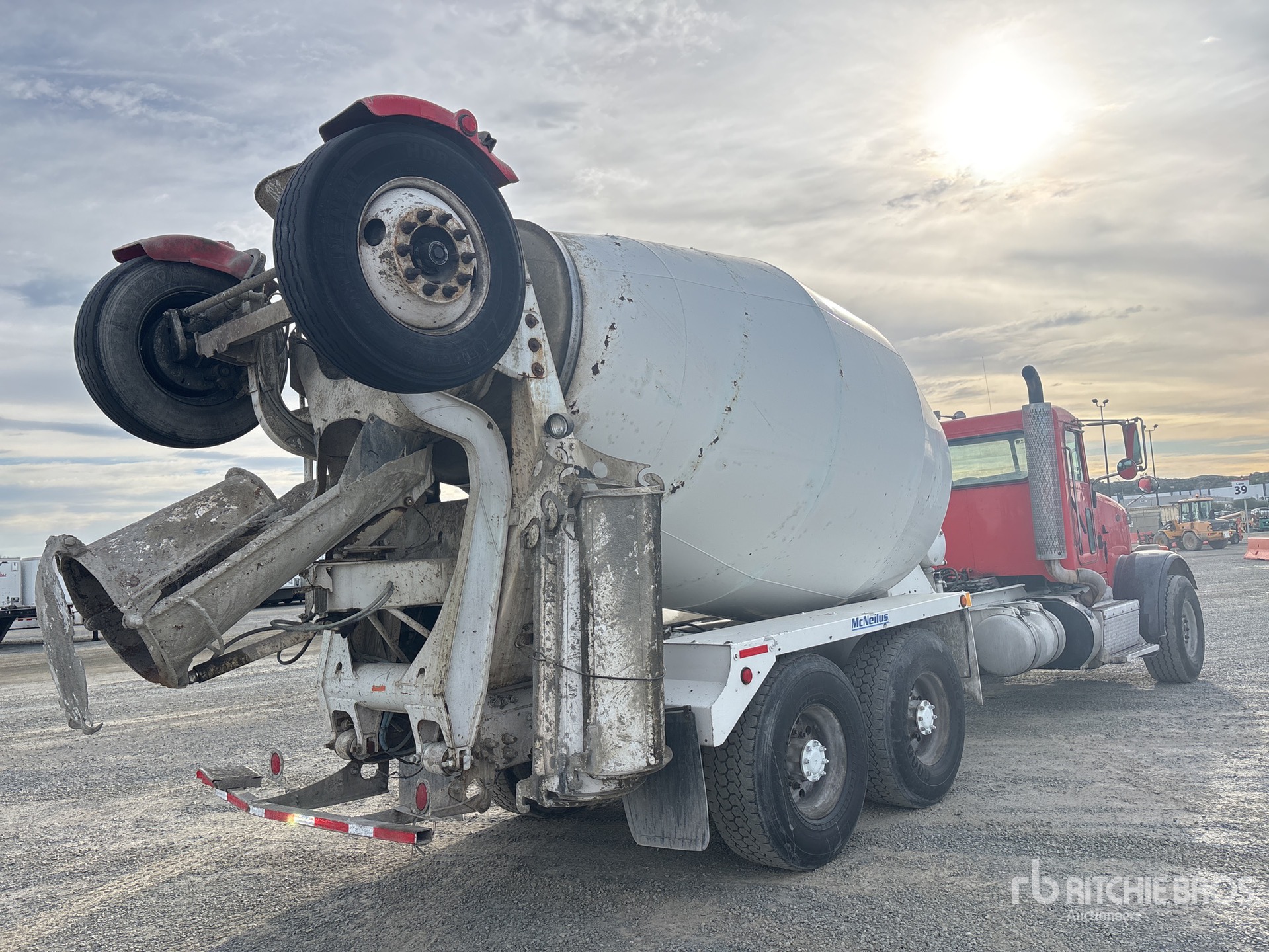 Cummins ISX12 6 Cylinder 11.9 L Diesel 320 hp Engine, 2013 US EPA Label, Requires Diesel Exhaust Fluid, 12011 Engine hrs, Allison Automatic Transmission, 20000 lb Front Axle, 39000 lb Rears, 59000 lb GVWR, 425/65R22.5, Trailing Tag Axle, Dual Steering Boxes, Double Frame, Hendrickson Walking Beam Suspension, 252 in Wheelbase, PTO, McNeilus Mixer Unit, 3 Removable Chutes, Remote Control w/Cord