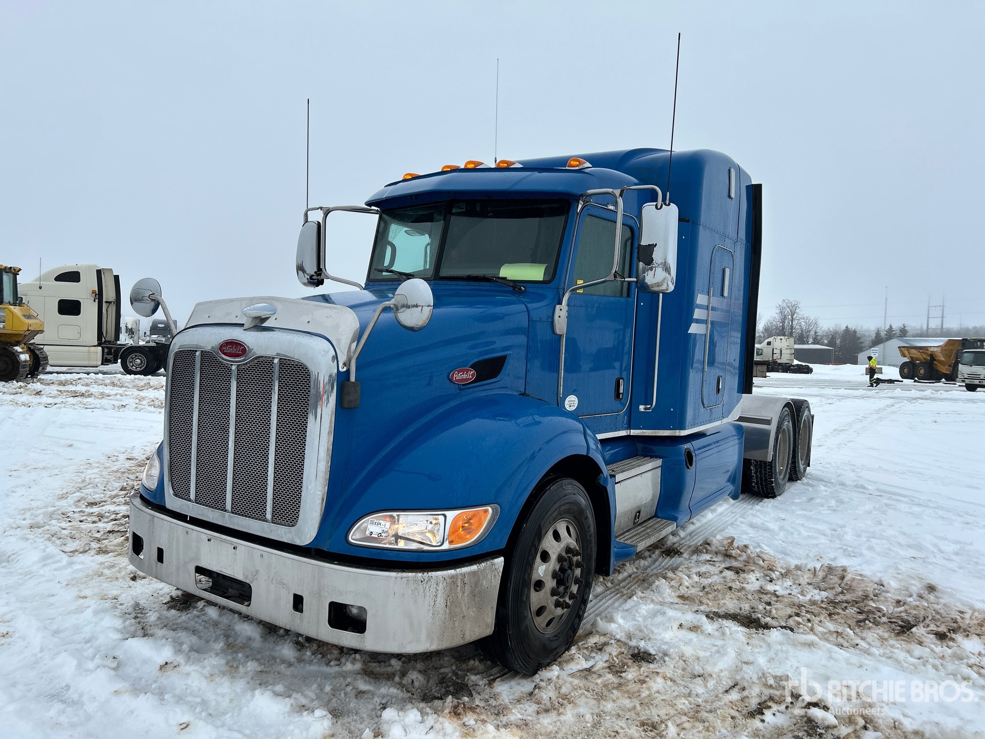 Paccar MX-13 455 hp Engine, 2013 US EPA Label, 15556 Engine hrs, Eaton Fuller Manual Transmission, 12000 lb Front Axle, 37998 lb Rears, 50000 lb GVWR, Engine Brake, 242 in Wheelbase, Air Suspension, Aluminum Wheels, 11R22.5, Air Sliding 5th Wheel, Dual Fuel Tanks