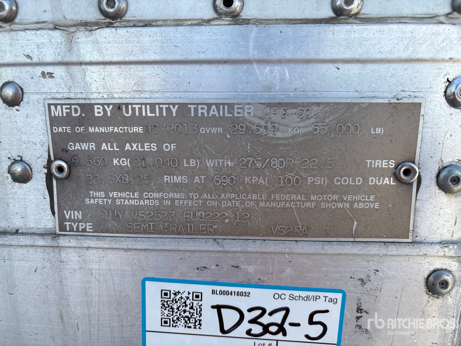 Located in Lane 17, Thermo King TK488CR Refrigeration Unit, Aluminum/Steel Combination Frame, Air Ride Sliding Suspension, Side Skirts, Ducted Floor, Swing Door, 295/75R22.5 Tires 65000 lb GVWR