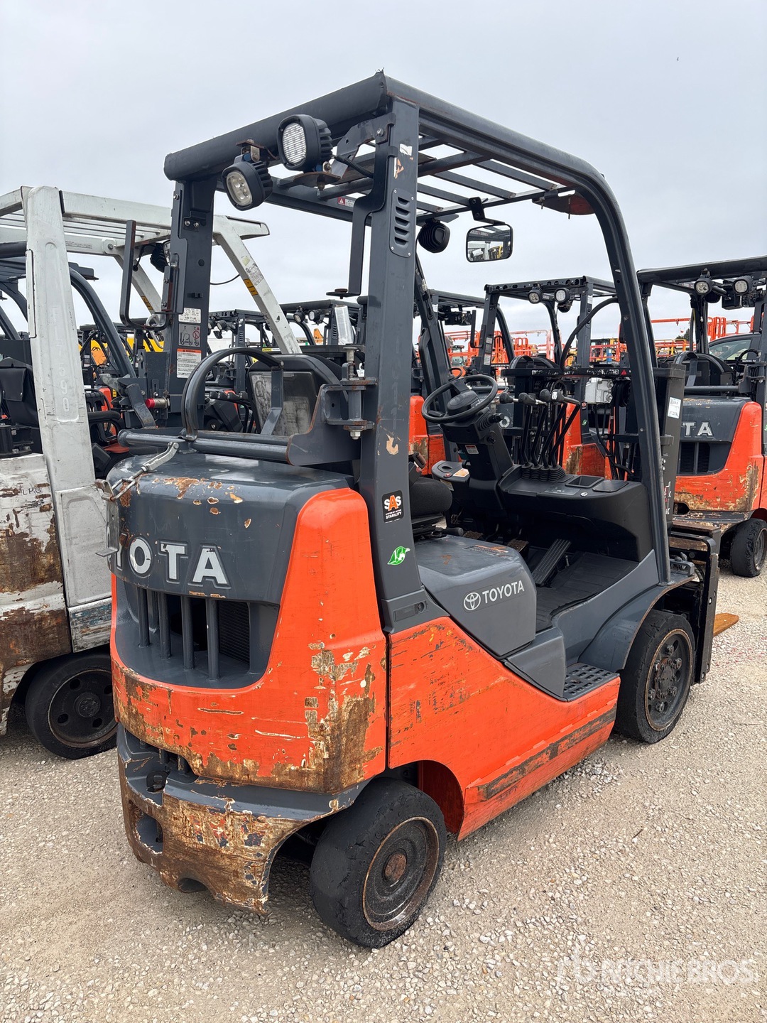 Single Stage Mast 42 in Forks, Fork Positioner, Load Weigh System, 2015 US EPA Label, CARB Compliant, Toyota 4Y ECS 4 Cylinder 2.23 L LPG Engine