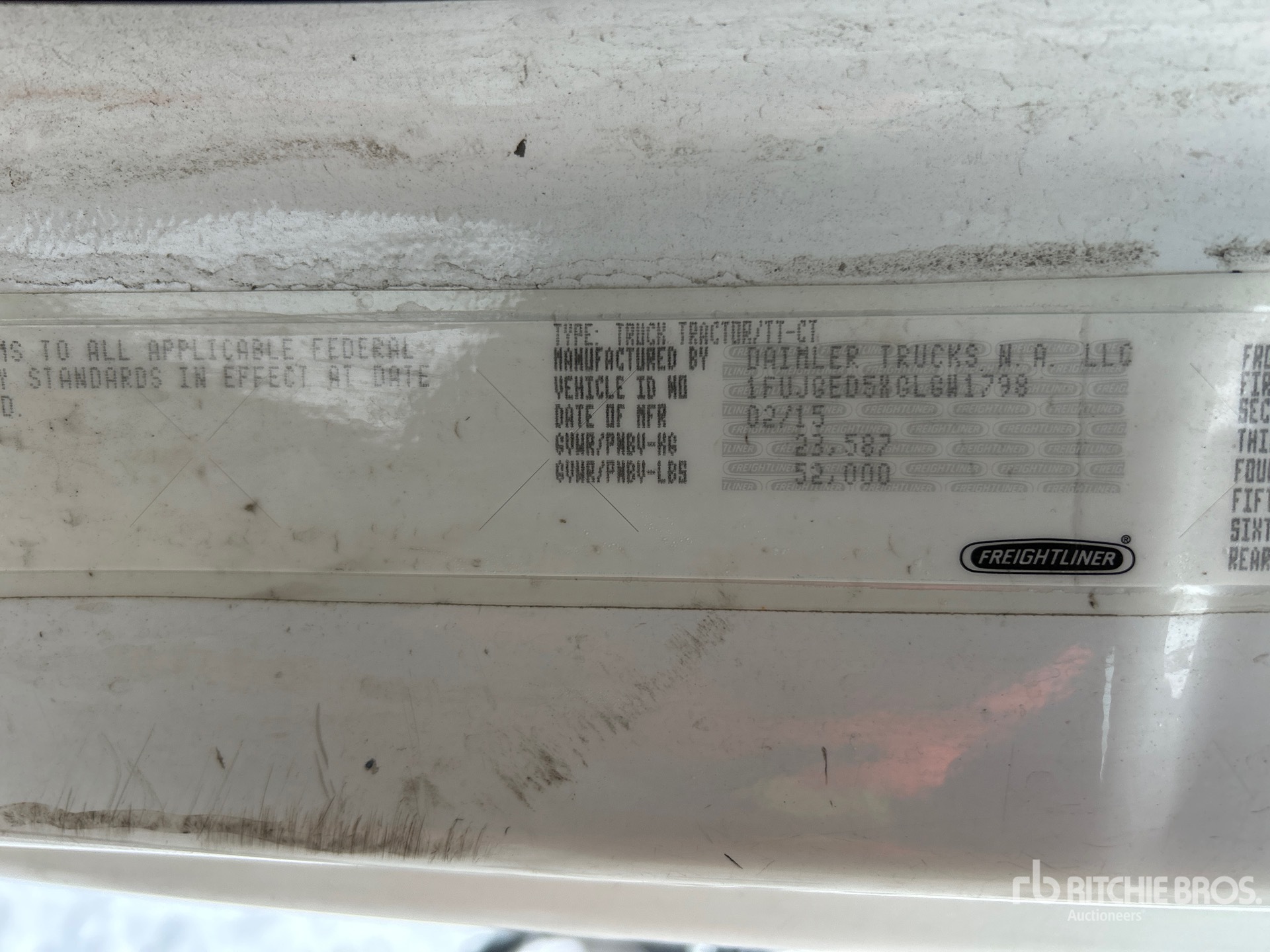 Detroit DD15 455 hp Engine, 18583 Engine hrs, Detroit DT12-OA-1750 HD 12-Speed Automatic Transmission, 12000 lb Front Axle, 40000 lb Rears, 23587 kg GVWR, 178 in Wheelbase, Air Suspension, Aluminum Wheels, 11R22.5 Front Tires, 11R22.5 Rear Tires, Air Sliding 5th Wheel, Dual Fuel Tanks