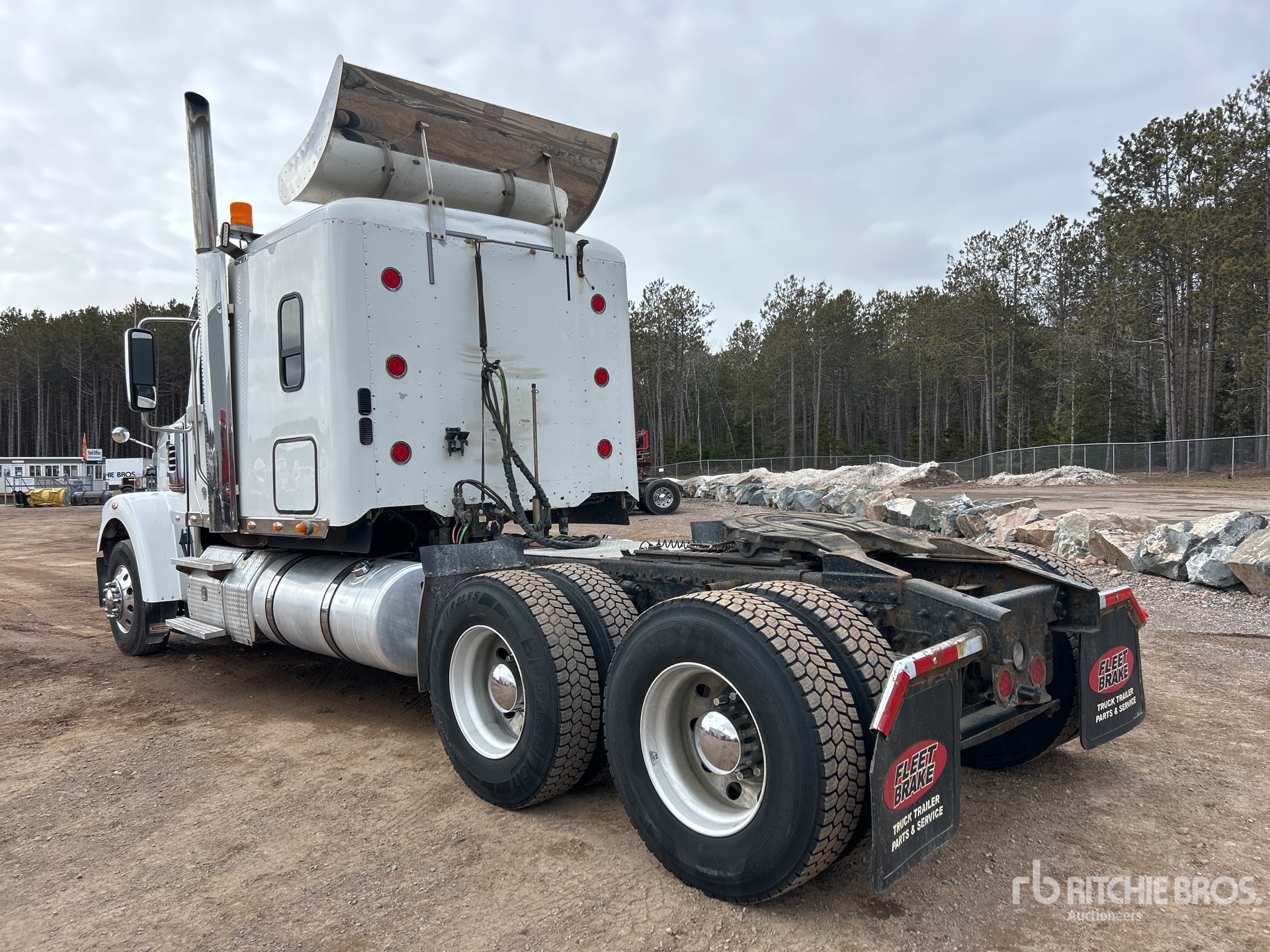 Detroit Engine, 2022 US EPA Label, 26536 Engine hrs, Eaton Fuller 18-Speed Manual Transmission, 13220 lb Front Axle, 44000 lb Rears, 57220 lb GVWR, Engine Brake, Differential Lock, 60 in Flat Top Sleeper Cab, 244 in Wheelbase, Air Suspension, Aluminum Wheels, 11R22.5, Air Sliding 5th Wheel, Dual Fuel Tanks