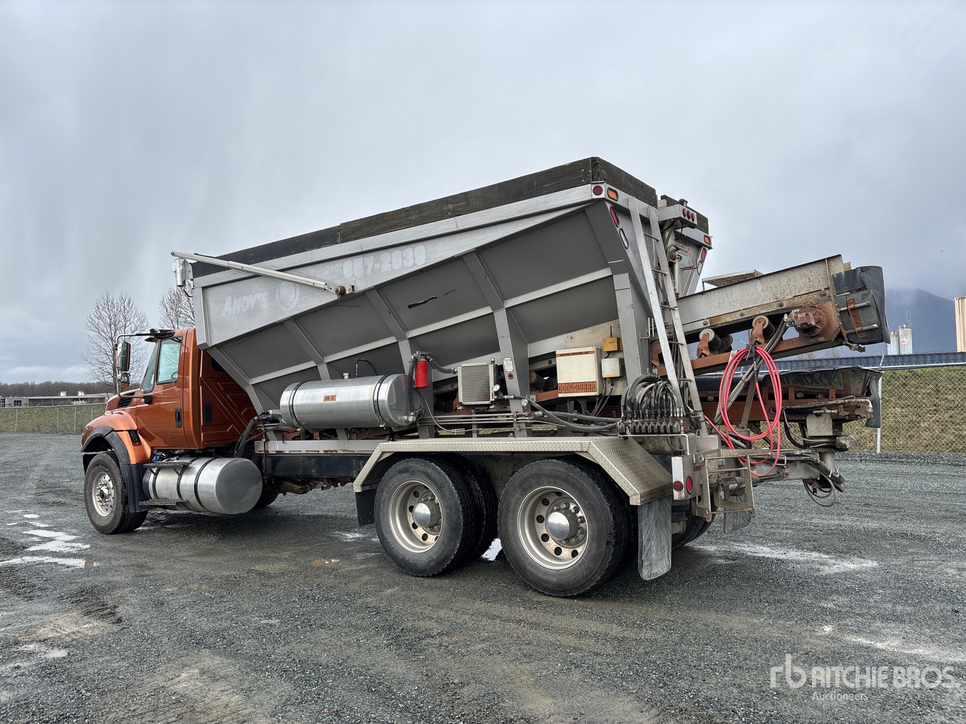 International 6 Cylinder 9.3 L Diesel Engine, 2016 US EPA Label, CARB Compliant, Requires Diesel Exhaust Fluid, 17916 Engine hrs, Eaton Fuller 13-Speed Manual Transmission, 9071 kg Front Axle, 18142 kg Rears, 27215 kg GVWR, Aluminum Wheels, 425/65R22.5 Front Tires, 11R24.5 Rear Tires, Hendrickson Air Ride Suspension, 242 in Wheelbase, Wet Kit, 1 Compartments, 13 in x 19 ft Conveyor, Cordless Remote Control