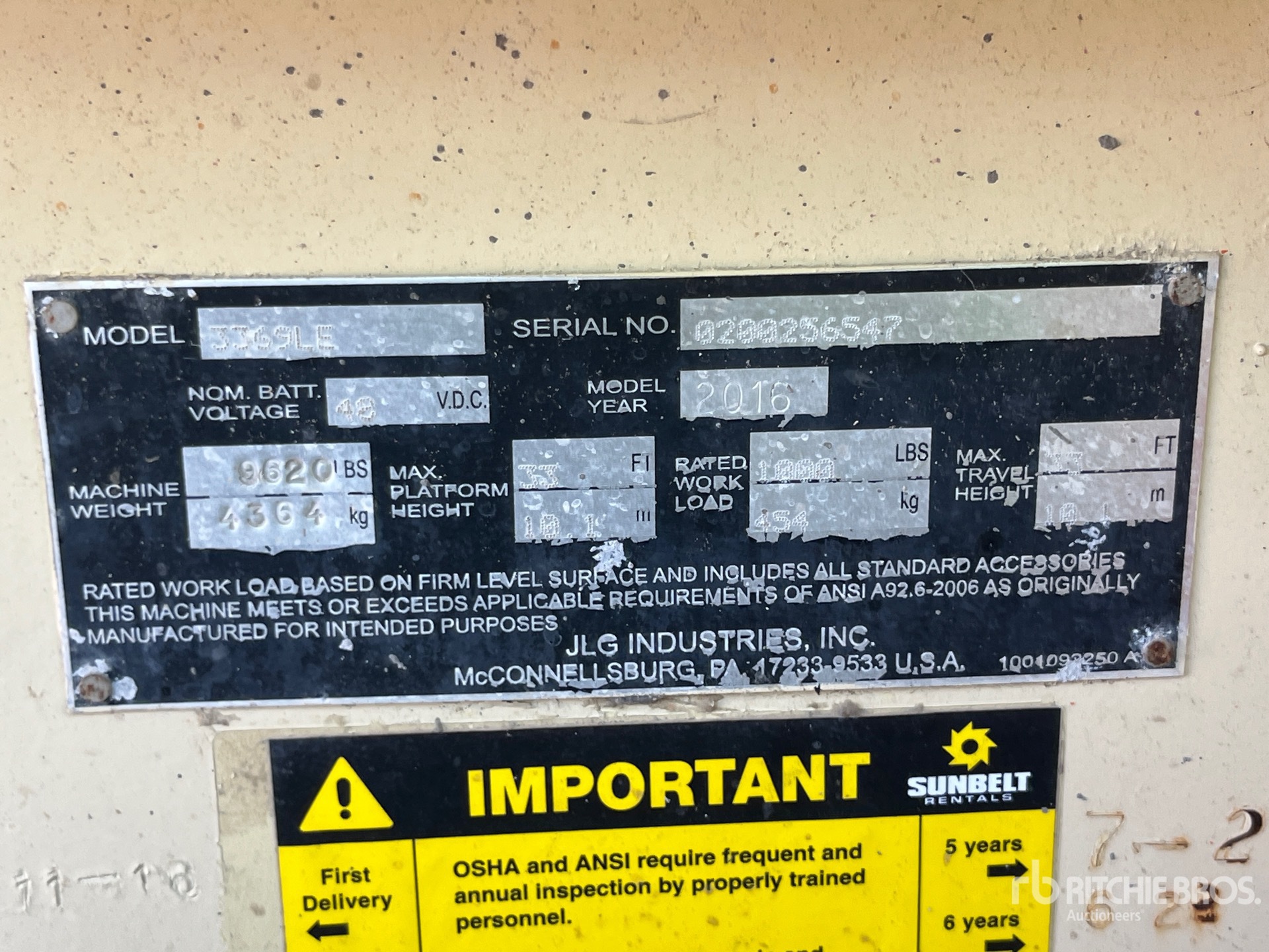 The detailed equipment information is limited in scope, and Ritchie Bros. Auctioneers has not inspected any aspects or components of the equipment other than those expressly set forth herein. Unless expressly stated, we make no representations or warranties, express or implied, concerning the equipment or its components, including without limitation any representations or warranties concerning functionality, conformity or compliance with any safety standard or requirement of any applicable authority or regulatory body, fitness for any particular purpose, or merchantability. You are strongly advised to perform your own detailed inspection of the equipment prior to bidding.