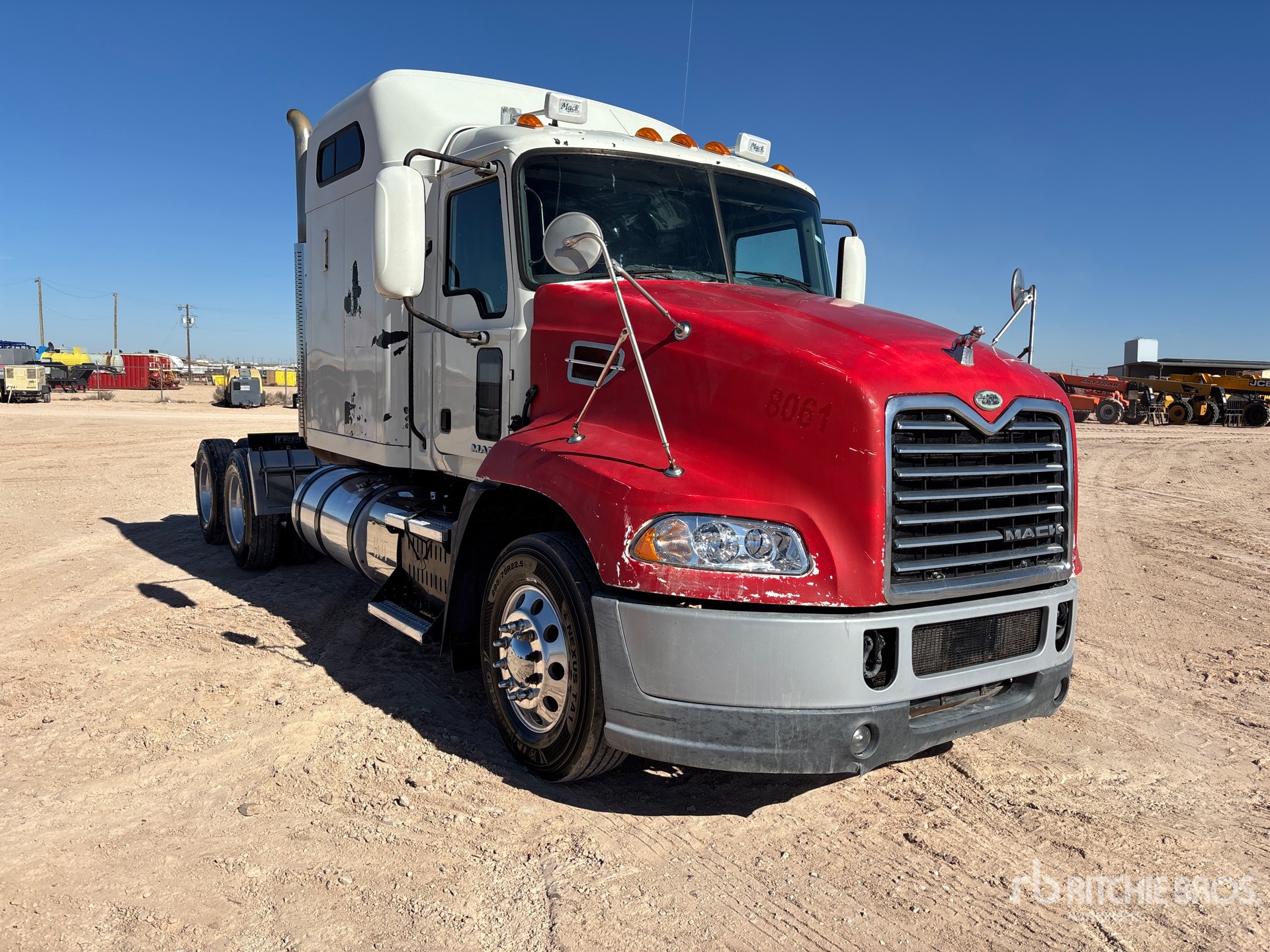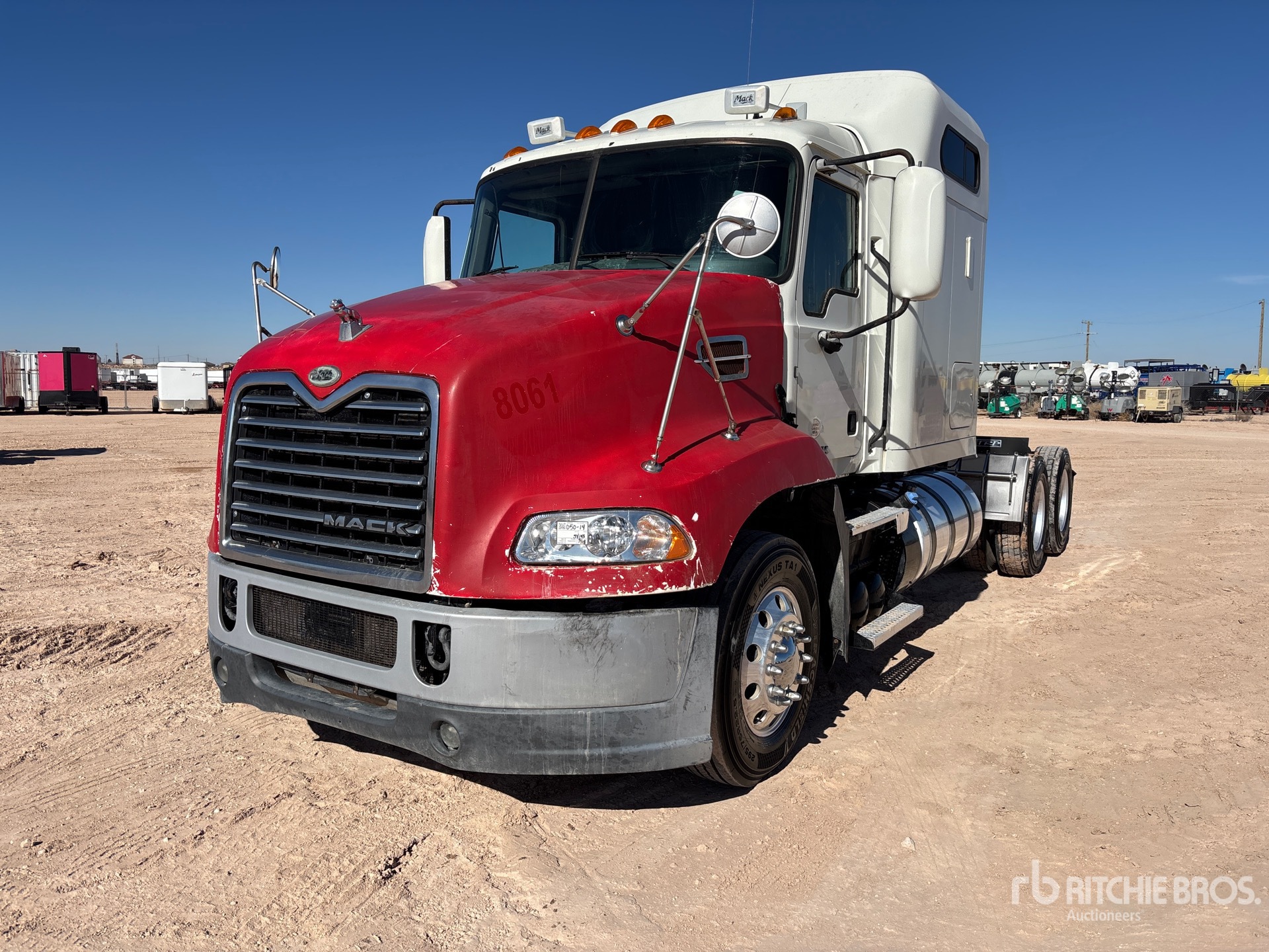 Mack MP8 445 hp Engine, 2015 US EPA Label, Mack mDrive 12-Speed Automated Transmission 12000 lb Front Axle, 40000 lb Rears, 52000 lb GVWR, 60 in Mid Roof Sleeper Cab, 231 in Wheelbase, Air Suspension, 295/75R22.5, Air Sliding 5th Wheel, Dual Fuel Tanks