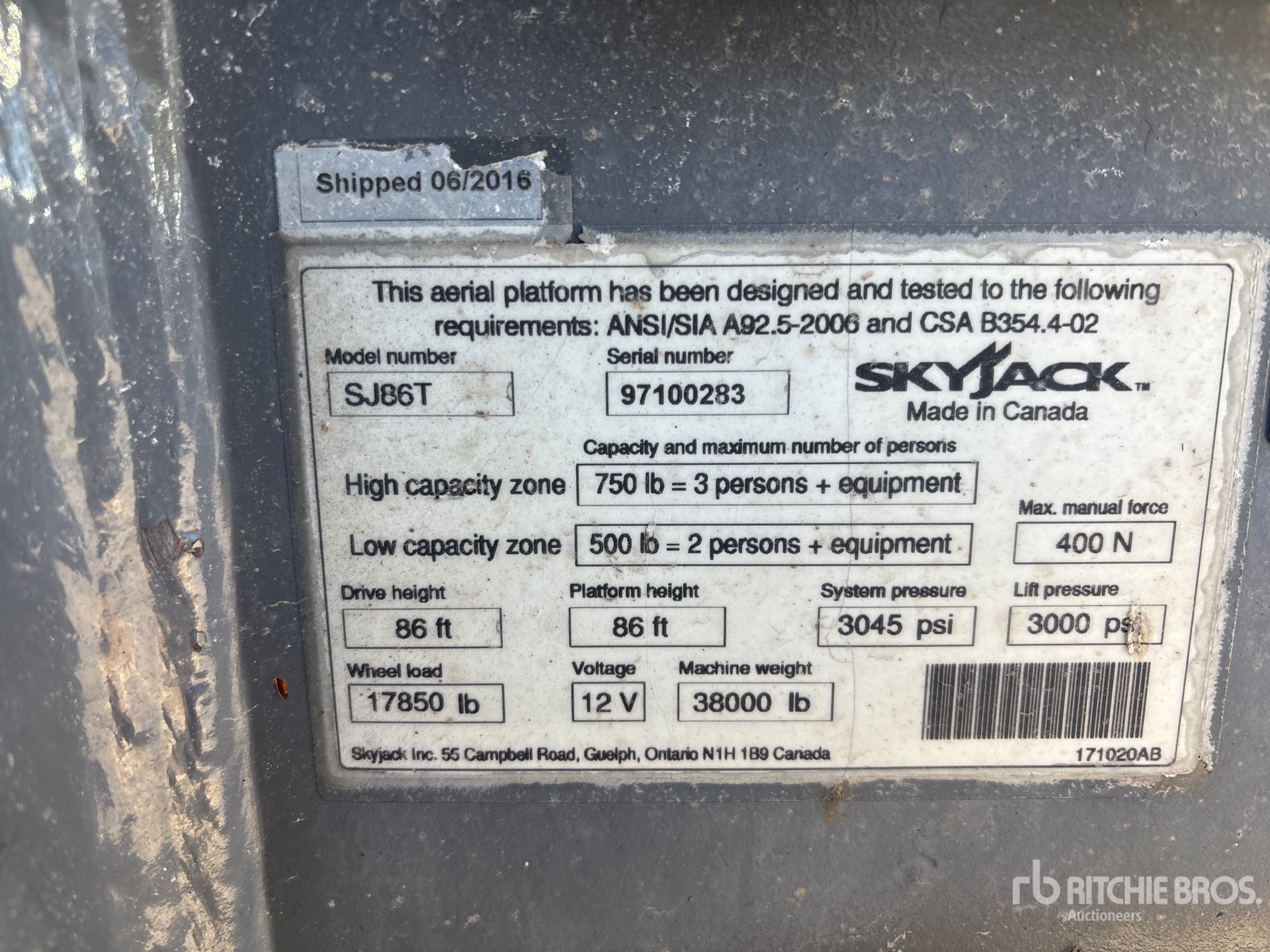 The detailed equipment information is limited in scope, and Ritchie Bros. Auctioneers has not inspected any aspects or components of the equipment other than those expressly set forth herein. Unless expressly stated, we make no representations or warranties, express or implied, concerning the equipment or its components, including without limitation any representations or warranties concerning functionality, conformity or compliance with any safety standard or requirement of any applicable authority or regulatory body, fitness for any particular purpose, or merchantability. You are strongly advised to perform your own detailed inspection of the equipment prior to bidding.