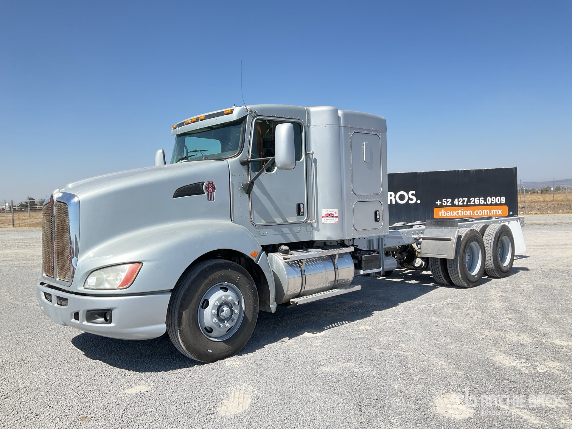 Paccar MX Diesel 455 hp Engine, 7644 Engine hrs, Engine Brake, Eaton Fuller RTLO-16918B 18-Speed Manual Transmission, 14600 lb Front Axle, 40000 lb Rears, 3.55:1 Axle Ratio, 42 in Flat Top Sleeper Cab, 11R22.5, Double Frame, Hendrickson Air Ride Suspension, 238 in Wheelbase, 118 in Cab to Axle, 266 in Cab to End of Frame