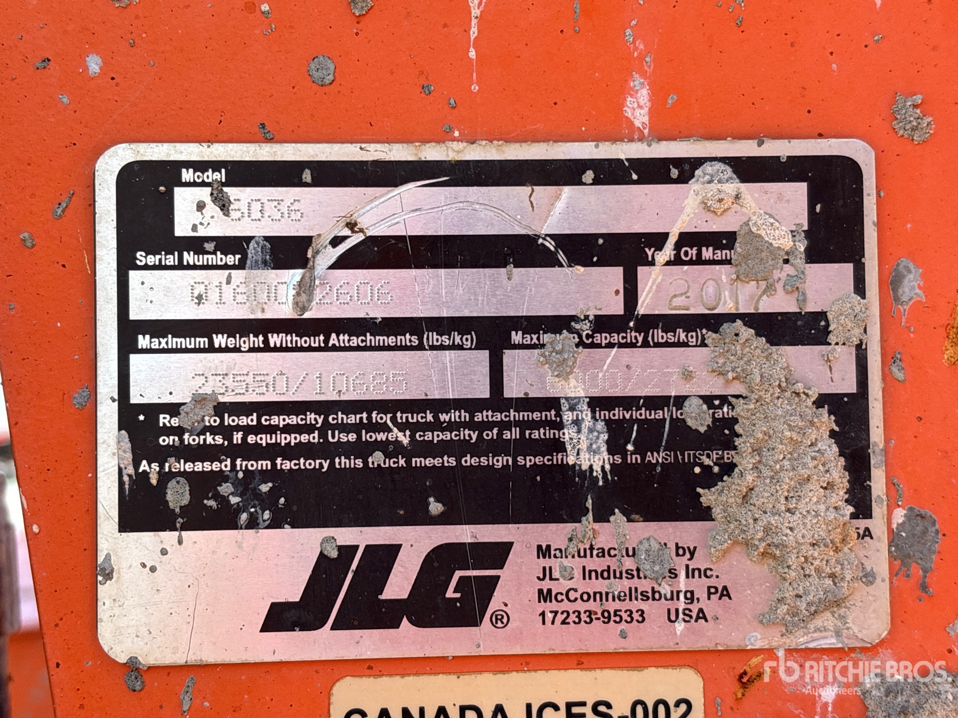 The detailed equipment information is limited in scope, and Ritchie Bros. Auctioneers has not inspected any aspects or components of the equipment other than those expressly set forth herein. Unless expressly stated, we make no representations or warranties, express or implied, concerning the equipment or its components, including without limitation any representations or warranties concerning functionality, conformity or compliance with any safety standard or requirement of any applicable authority or regulatory body, fitness for any particular purpose, or merchantability. You are strongly advised to perform your own detailed inspection of the equipment prior to bidding.