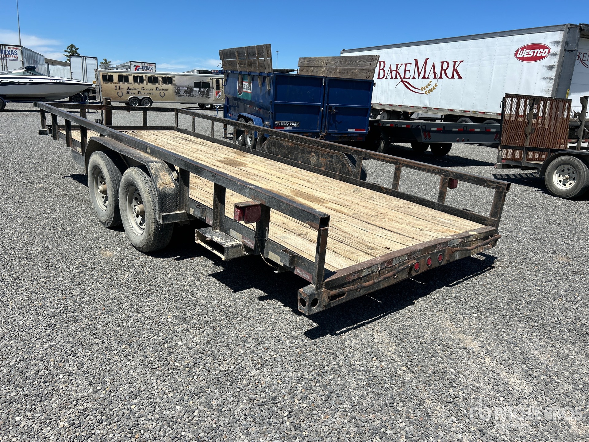 Ball Hitch, Spring Suspension, Electric Brakes, 83 in Deck Width, 83 in Overall Width, Wood Flooring, 235/80R16 Tires, 14000 lb GVWR