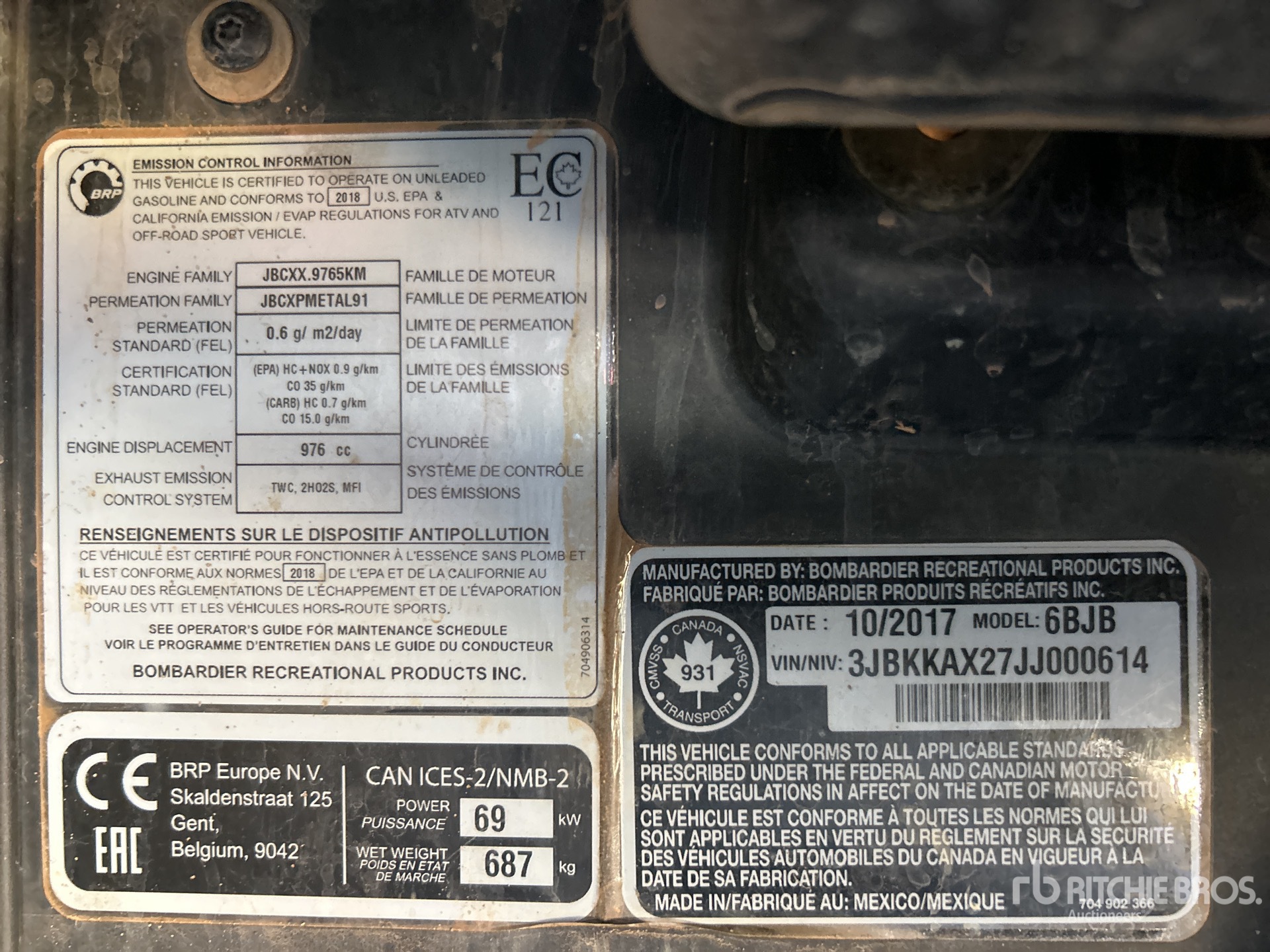 Canopy, 2 Passenger, Windshield, Rear Screen, Winch, Brush Guard, Hitch Receiver, Manual Dump Bed, 2018 US EPA Label, CARB Compliant, 2 Cylinder 976 cc Gasoline Engine