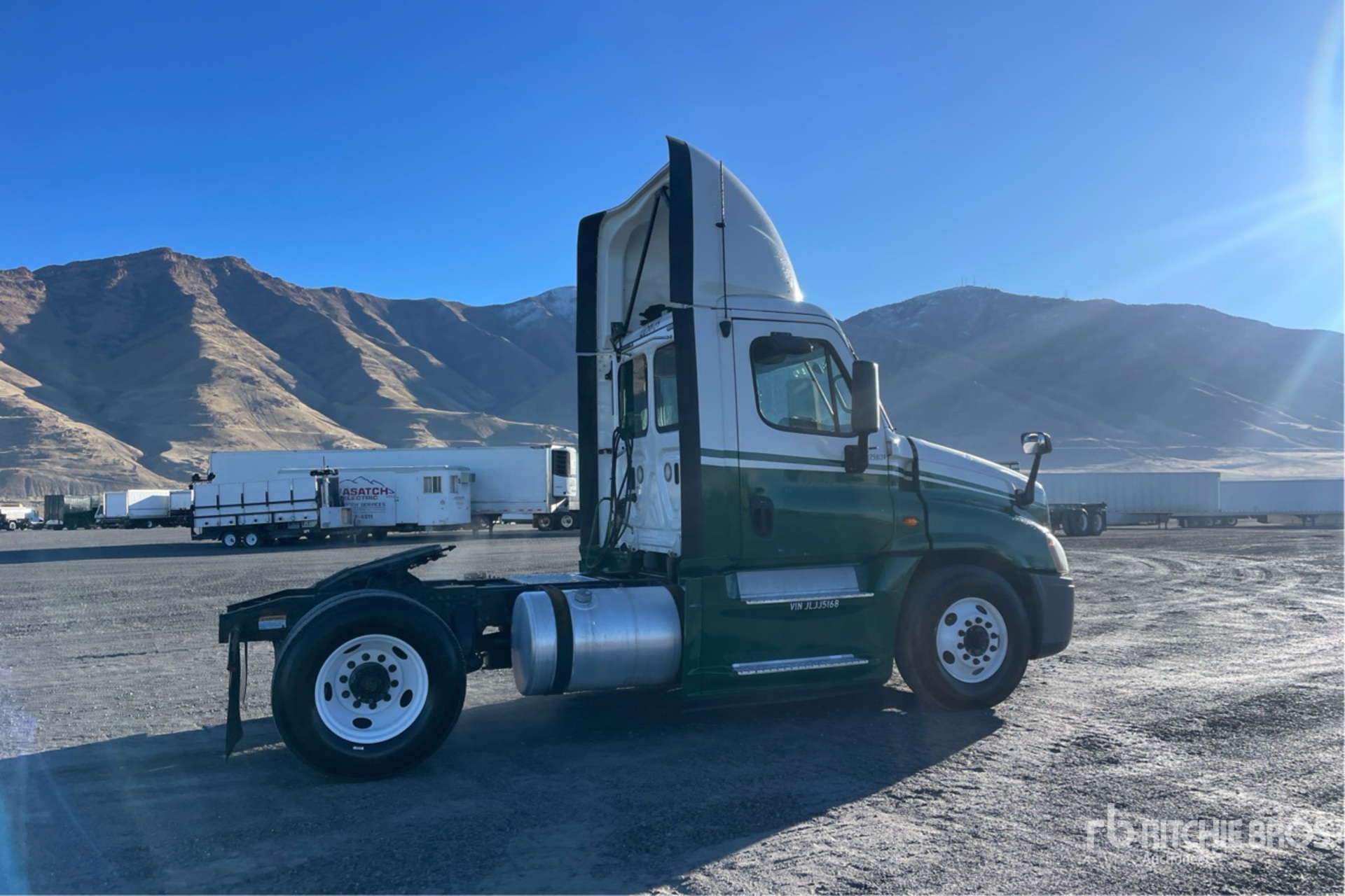 Detroit DD15 455 hp Engine, 17191 Engine hrs, Eaton Fuller Eaton FOA-15810C Manual Transmission, 12000 lb Front Axle, 21000 lb Rears, 33000 lb GVWR, 158 in Wheelbase, Air Suspension, 11R22.5