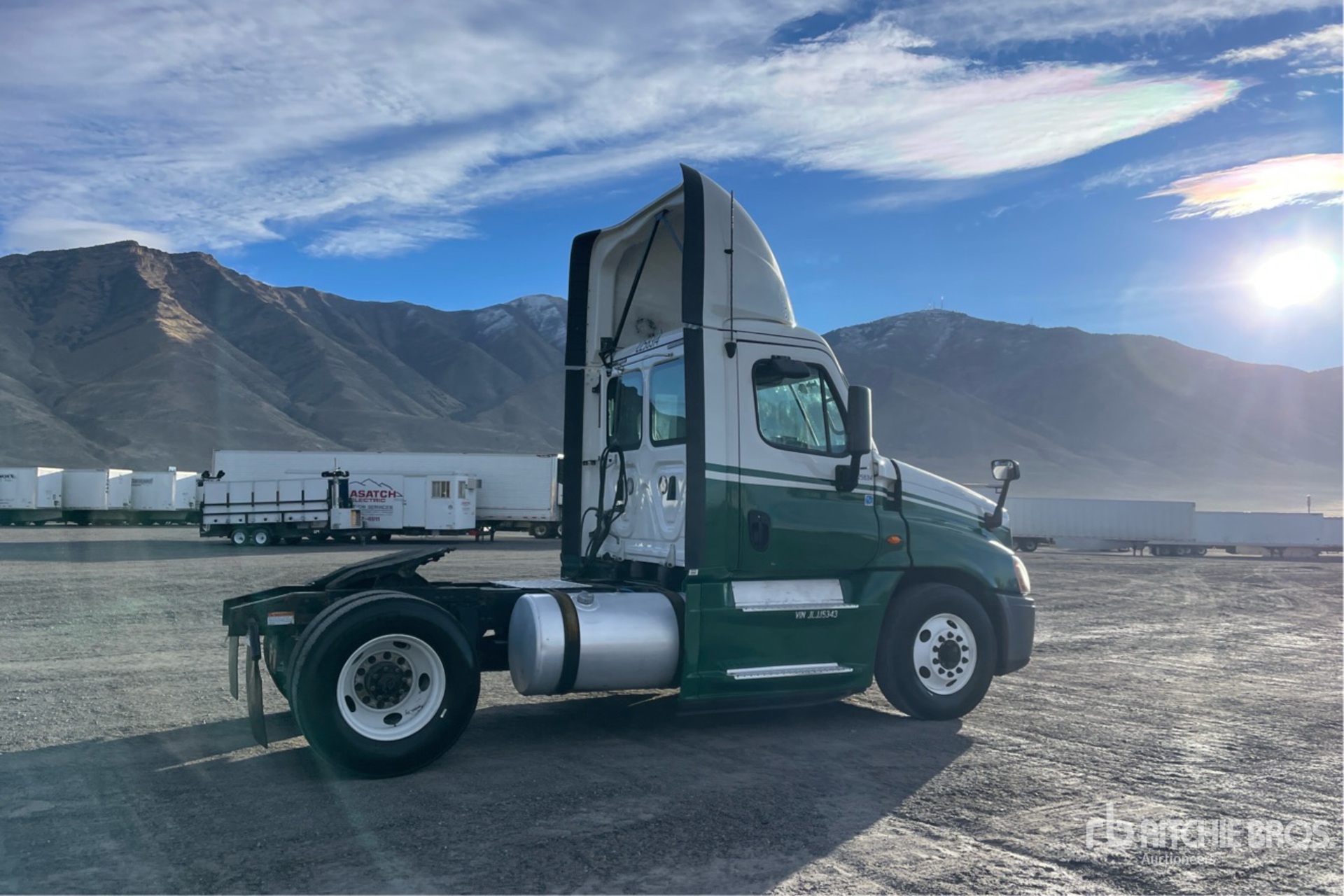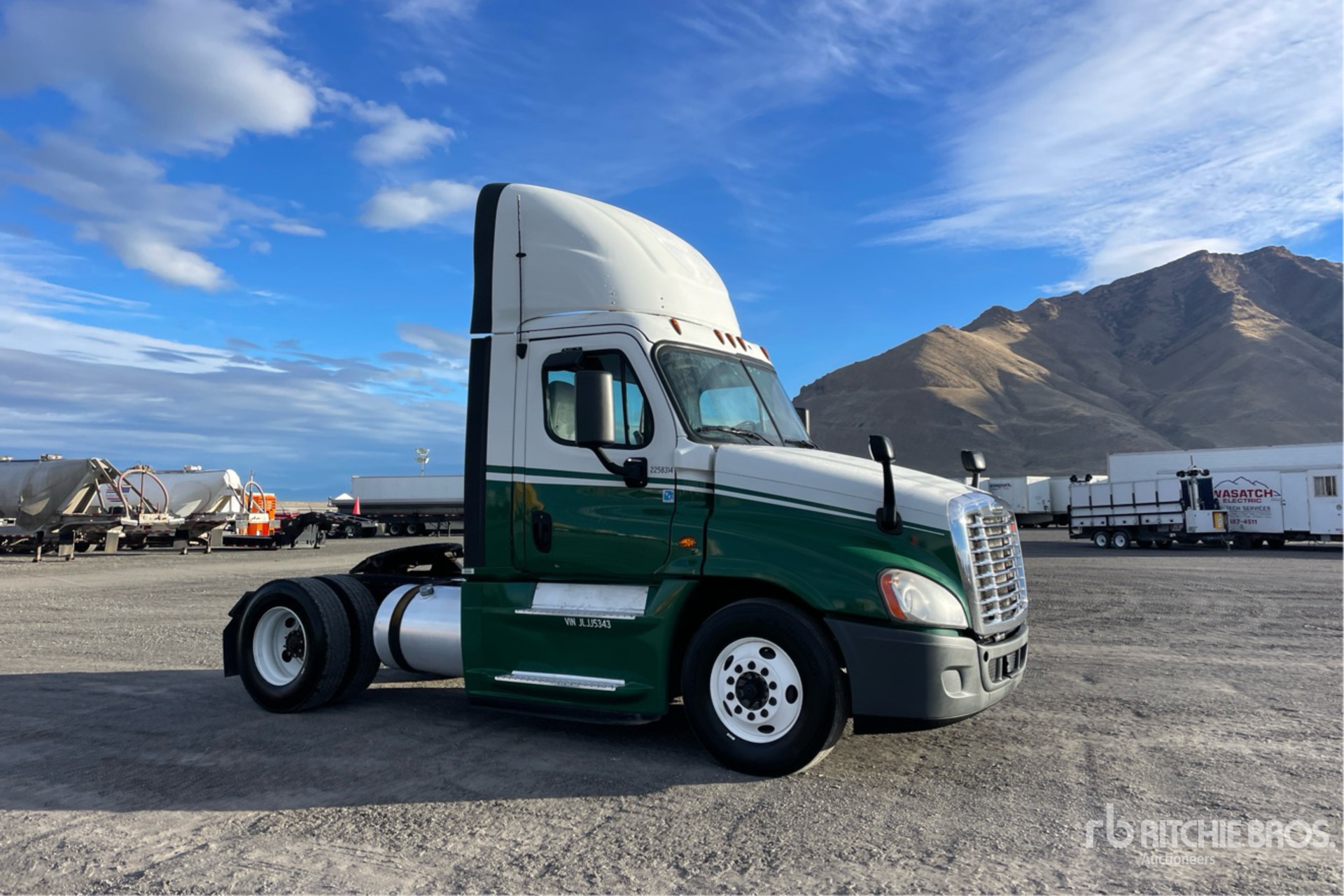 Detroit DD15 455 hp Engine, 2017 US EPA Label, 19438 Engine hrs, Eaton Fuller Eaton FO-15810C 10-Speed Manual Transmission, 12000 lb Front Axle, 21000 lb Rears, 33000 lb GVWR, 158 in Wheelbase, Air Suspension, 11R22.5, Dual Fuel Tanks
