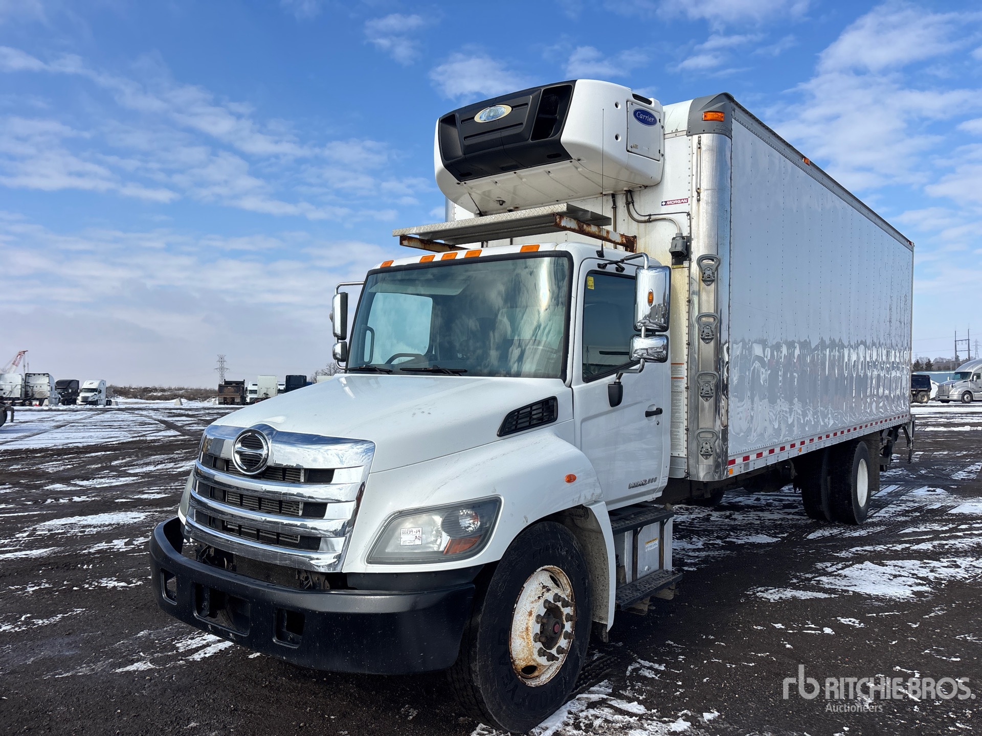 Hino 6 Cylinder Diesel Engine, 2017 US EPA Label, CARB Compliant, 13668 Engine hrs, Automatic Transmission, 12000 lb Front Axle, 21000 lb Rears, 33000 lb GVWR, 11R22.5, Hendrickson Air Ride Suspension, 270 in Wheelbase, Carrier Supra 860 Reefer Unit, 11492 Reefer Total Hours:, Morgan 26 ft x 102 in Wide x 102 in High Body, Curbside Door, Liftgate