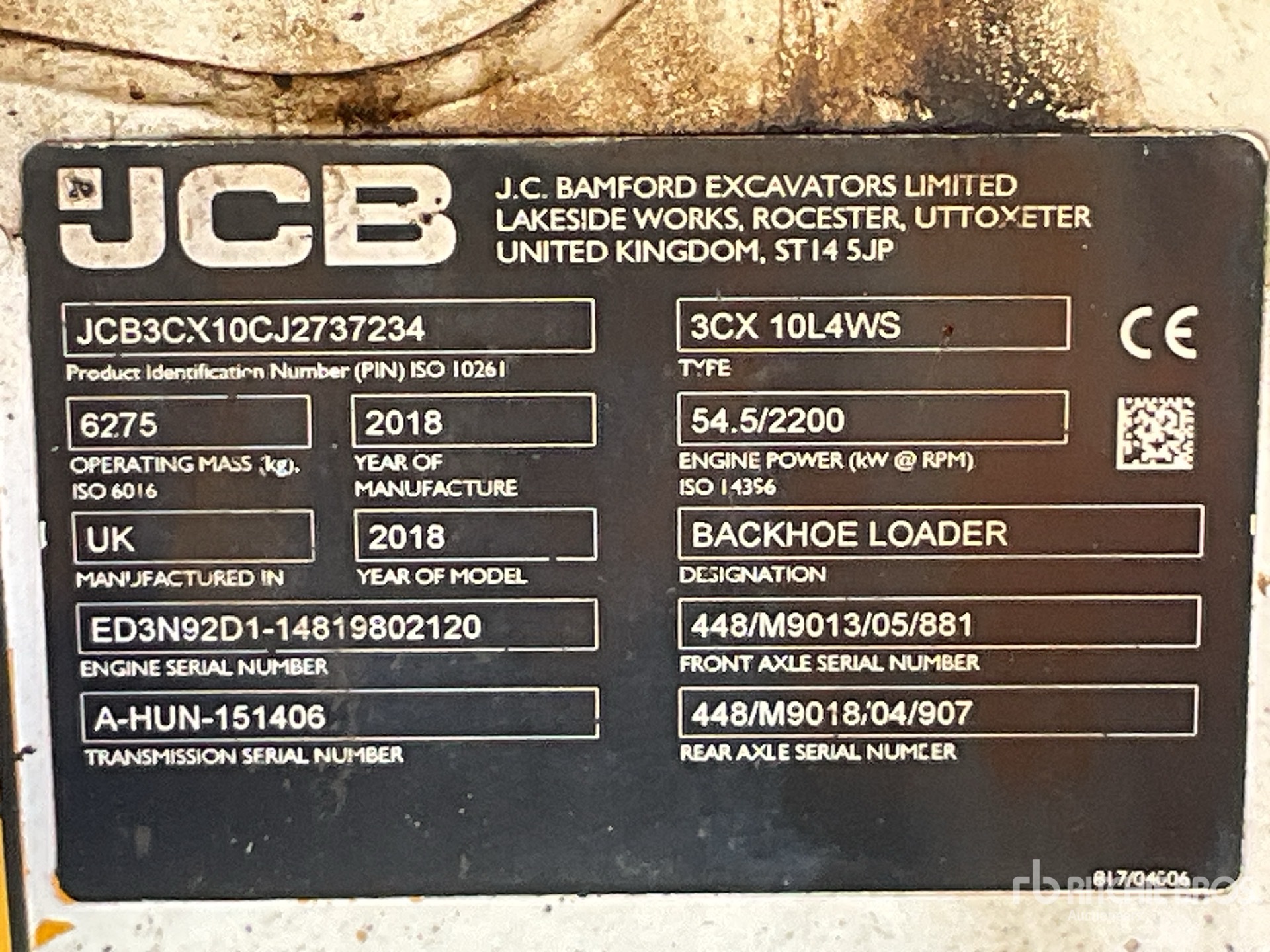 JCB3CX10CJ2737234, No serial number or manufacturer’s identifying number found. This unit may be difficult to export.