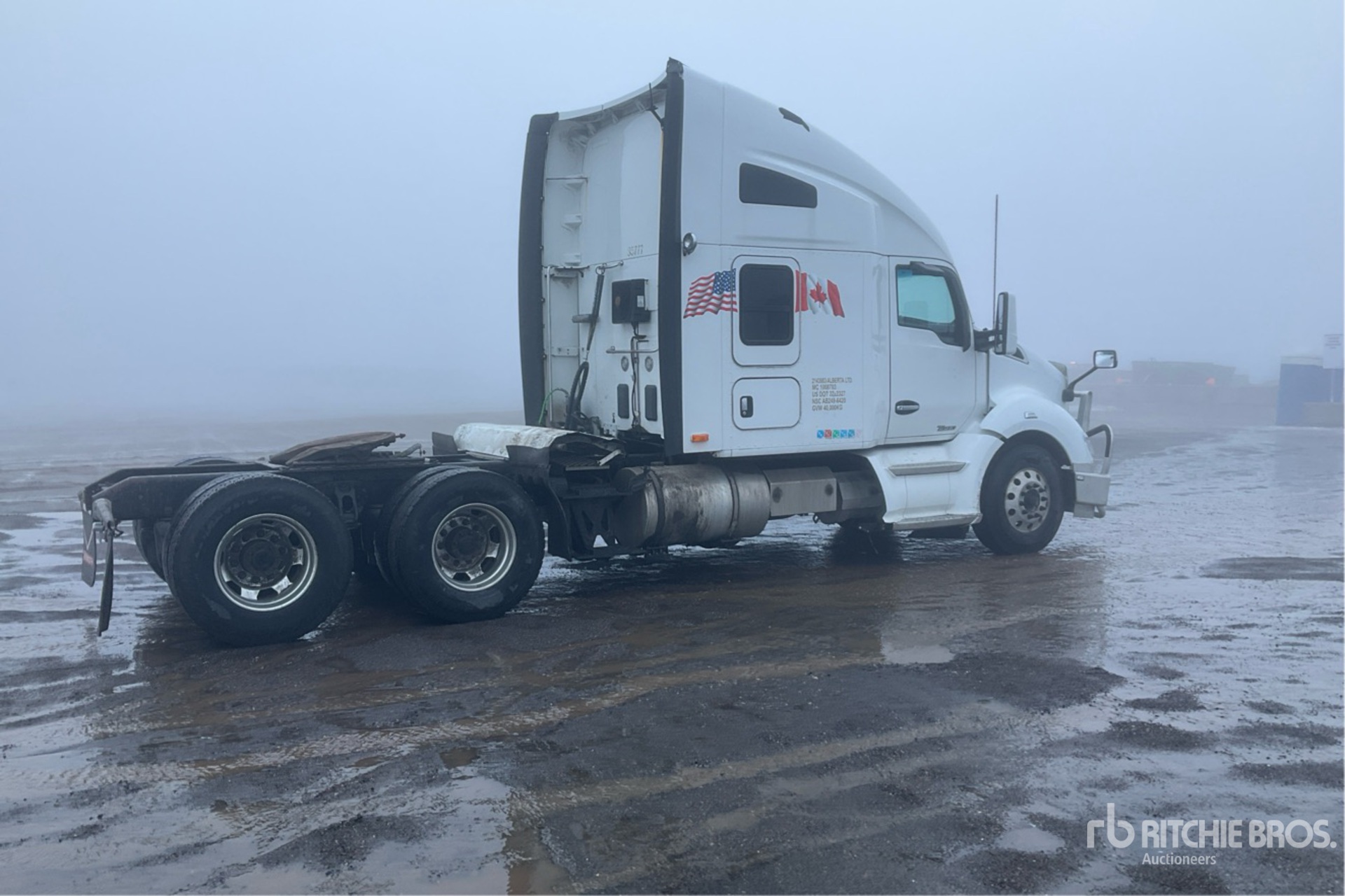 Paccar Engine, 13299 Engine hrs, Eaton Fuller FO16E3131A-MHP Ultrashift Automated Transmission, 13200 lb Front Axle, 40000 lb Rears, 53200 lb GVWR, Engine Brake, Differential Lock, High Rise Sleeper Cab, Bunk Beds, 236 in Wheelbase, Air Suspension, Aluminum Wheels, 11R22.5, Air Sliding 5th Wheel, Dual Fuel Tanks