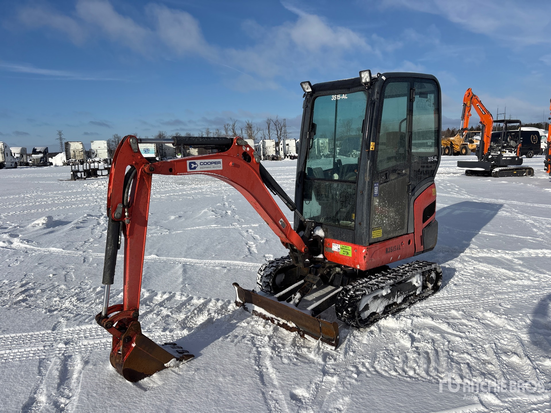 Enclosed Cab, Air Conditioner, Tier 4, 2017 US EPA Label, CARB Compliant, Swing Boom, 3 ft 4 in Stick, Backfill Blade, 9 in Rubber Tracks, Expandable Width Tracks, 11 in Digging Bucket