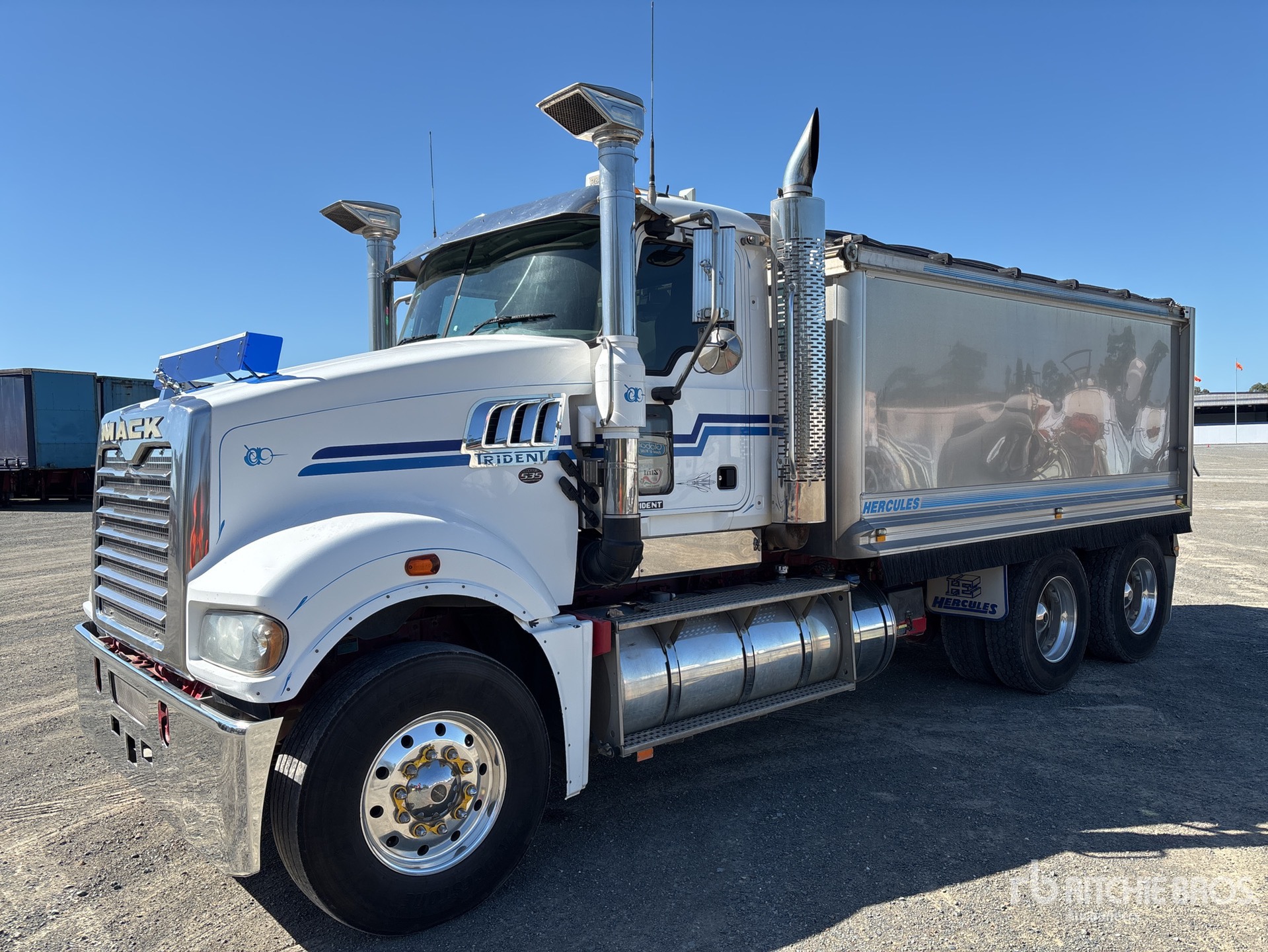Mack MP8 535 hp Engine, 15956 Engine hrs, Exhaust Brake, Mack mDRIVE Automatic Transmission, Double Differential Locks, 295/80R22.5 Front Tires, 11R22.5 Rear Tires, Air Ride Suspension, 5500 mm Wheelbase, PTO, Hydraulic System, Hercules 1700 mm Long x 4500 mm High Rock Sheeted Alloy Body, Electric Roll Tarp, Ringfeder, GVM 27.6 t, PBS Approved