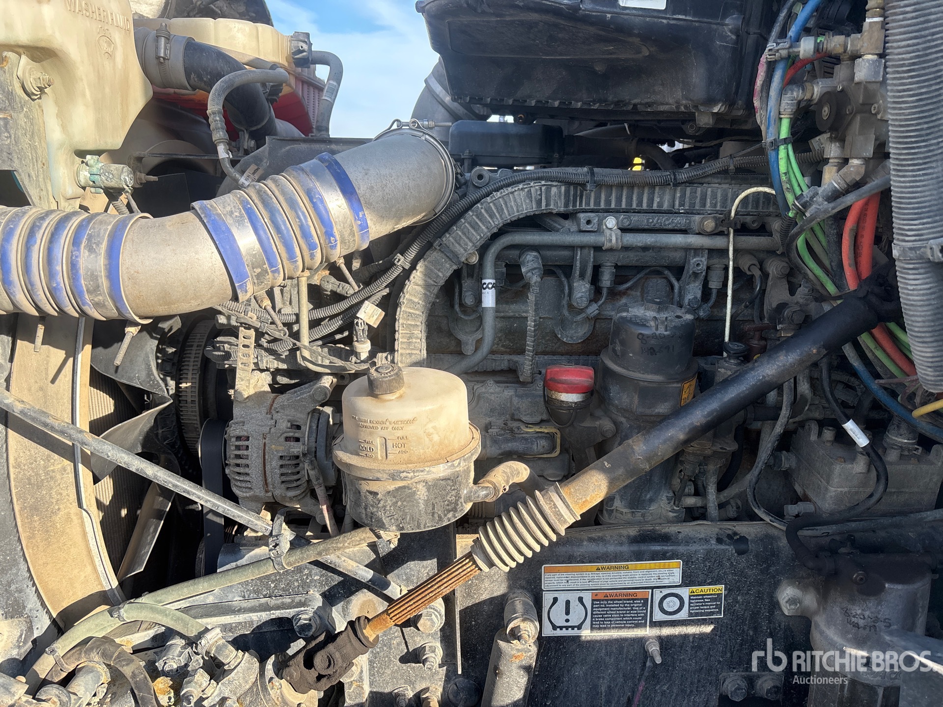 Paccar MX-13 6 Cylinder 12.9 L Diesel 455 hp Engine, 2017 US EPA Label, Requires Diesel Exhaust Fluid, 9407 Engine hrs, Engine Brake, Eaton Fuller Manual Transmission, 20000 lb Front Axle, 40000 lb Rears, 68000 lb GVWR, Air Ride Cab, Aluminum Wheels, 315/80R22.5 Front Tires, 11R22.5 Rear Tires, 3 Steerable Air Lift Pusher Axle, Dual Steering Boxes, Hendrickson Haulmaax Rubber over Walking Beam Suspension, 274 in Wheelbase, PTO, Beau Roc 19 ft Long x 4 ft 2 in High Steel Body, Electric Roll Tarp, High-Lift Tailgate, Pintle Hitch