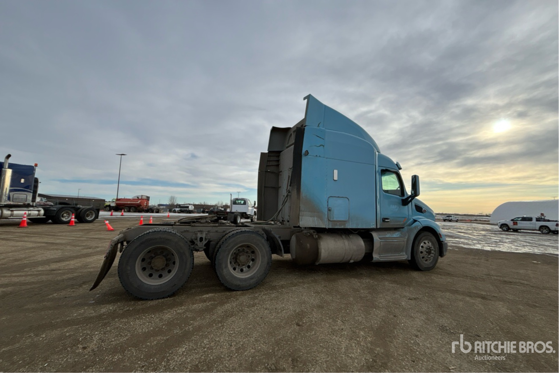 Located in Lane 33 Spot 37, Paccar MX-13 Engine, 19707 Engine hrs, Eaton Fuller Automated Transmission, 12000 lb Front Axle, 40000 lb Rears, 52000 lb GVWR, Engine Brake, Differential Lock, 63 in Mid Roof Sleeper Cab, 222 in Wheelbase, Air Suspension, Aluminum Wheels, 11R22.5, Dual Steering Boxes, Air Sliding 5th Wheel, Dual Fuel Tanks
