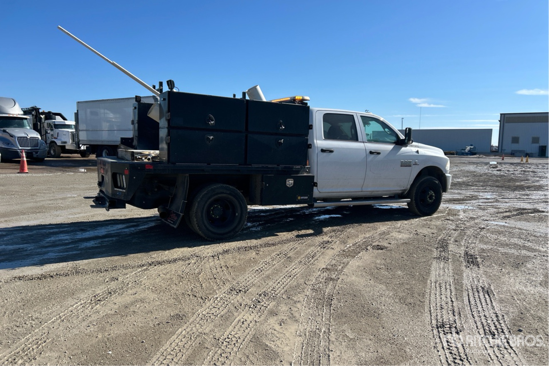 Cummins V8 6.7 L Diesel Engine, 2018 US EPA Label, Requires Diesel Exhaust Fluid, 4450 Engine hrs, Automatic Transmission, 6000 lb Front Axle, 9850 lb Rears, 14000 lb GVWR, 235/80R17, Spring Suspension, 176 in Wheelbase, 9 ft x 93 in Bed, Receiver, Equipment-from-a-Primoris-Services-Corp-company
