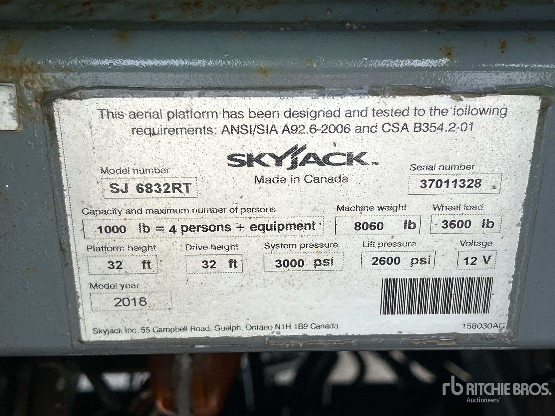 The detailed equipment information is limited in scope, and Ritchie Bros. Auctioneers has not inspected any aspects or components of the equipment other than those expressly set forth herein. Unless expressly stated, we make no representations or warranties, express or implied, concerning the equipment or its components, including without limitation any representations or warranties concerning functionality, conformity or compliance with any safety standard or requirement of any applicable authority or regulatory body, fitness for any particular purpose, or merchantability. You are strongly advised to perform your own detailed inspection of the equipment prior to bidding.