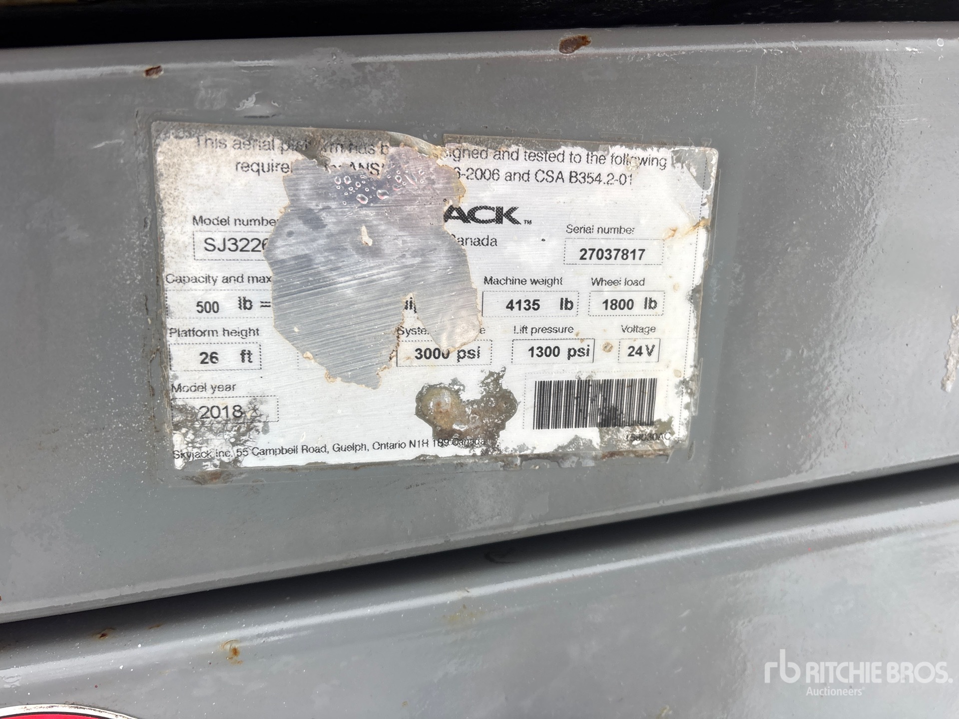 The detailed equipment information is limited in scope, and Ritchie Bros. Auctioneers has not inspected any aspects or components of the equipment other than those expressly set forth herein. Unless expressly stated, we make no representations or warranties, express or implied, concerning the equipment or its components, including without limitation any representations or warranties concerning functionality, conformity or compliance with any safety standard or requirement of any applicable authority or regulatory body, fitness for any particular purpose, or merchantability. You are strongly advised to perform your own detailed inspection of the equipment prior to bidding.