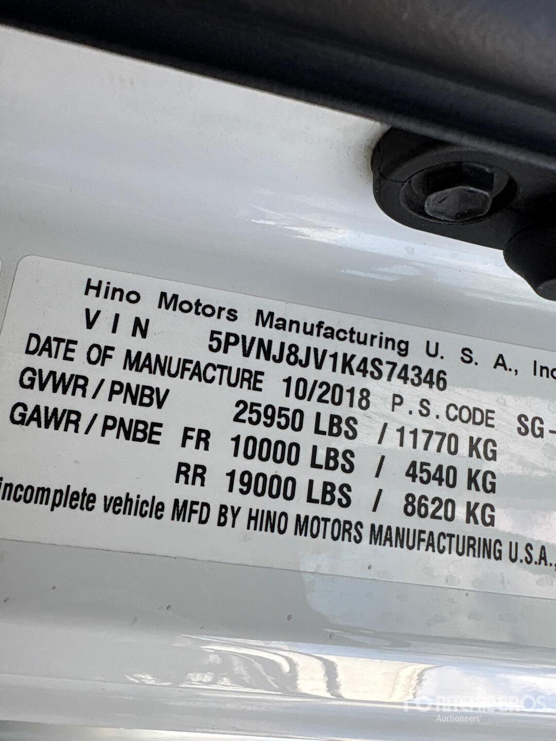 Located in Lane 14, Hino Motors Diesel Engine, 2018 US EPA Label, Requires Diesel Exhaust Fluid, Engine Brake, Automatic Transmission, 10000 lb Front Axle, 19000 lb Rears, 25950 lb GVWR, Aluminum Wheels, 11R22.5, Air Ride Suspension, 272 in Wheelbase, Supreme 26 ft x 102 in Wide x 100 in High Body, Liftgate, Professionally-Maintained-Fleet-Vehicle-PAG